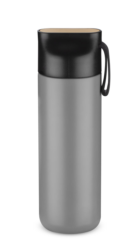Die ELSA-Thermoflasche ist aus rostfreiem Stahl gefertigt und entspricht einem höheren Standard. Sie hat ein Vakuum zwischen den Wänden, so dass sie die Temperatur des Getränks etwa 10 Stunden lang aufrechterhält. Die Kunststoffkappe hat ein dekoratives natürliches Bambuselement und einen Silikongriff.