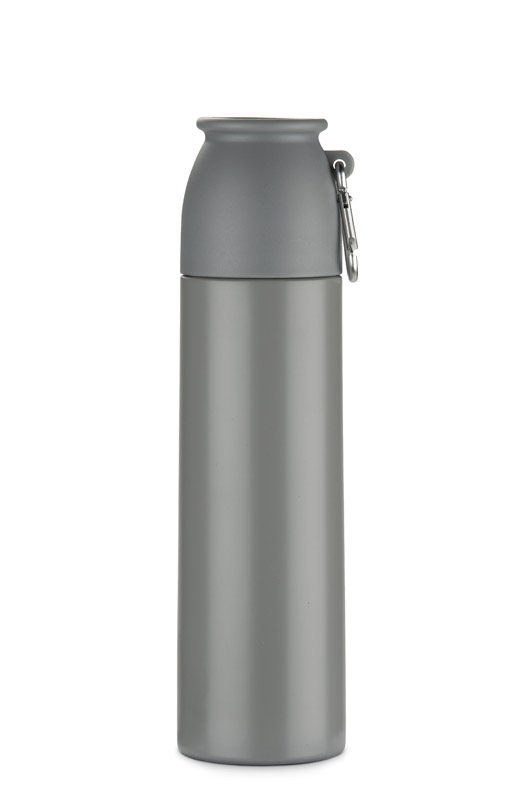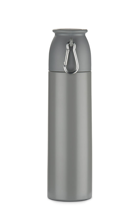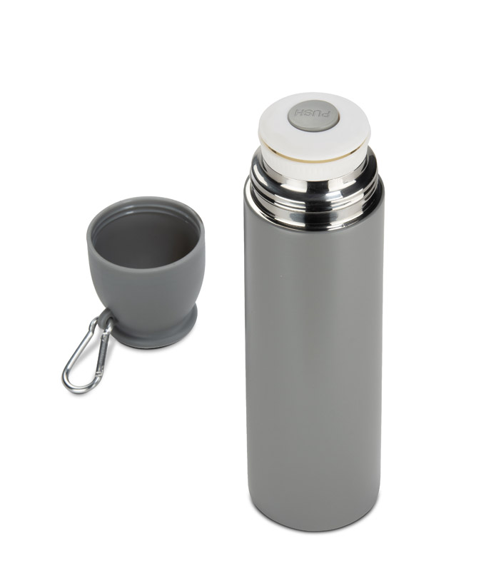 Die 500-ml-Thermoskanne von FAZARI ist aus rostfreiem Stahl gefertigt und hält Getränke bis zu 8 Stunden lang warm. Ausgestattet mit einem praktischen "Press"-Öffnungsmechanismus, der es einfach macht, die Thermoskanne unterwegs oder im Auto zu verwenden. Der klassische Gewindedeckel dient gleichzeitig als Becher, und mit dem angebrachten Karabiner kann die Thermoskanne an einer Tasche oder einem Rucksack befestigt werden. Dank des schlanken Designs passt die Thermoskanne problemlos in Autogriffe und Seitentaschen von Rucksäcken.