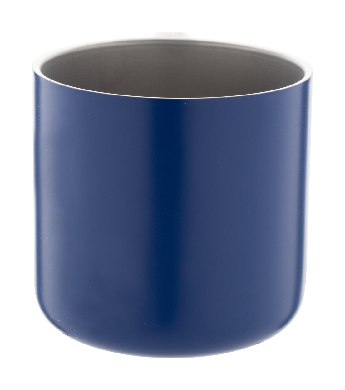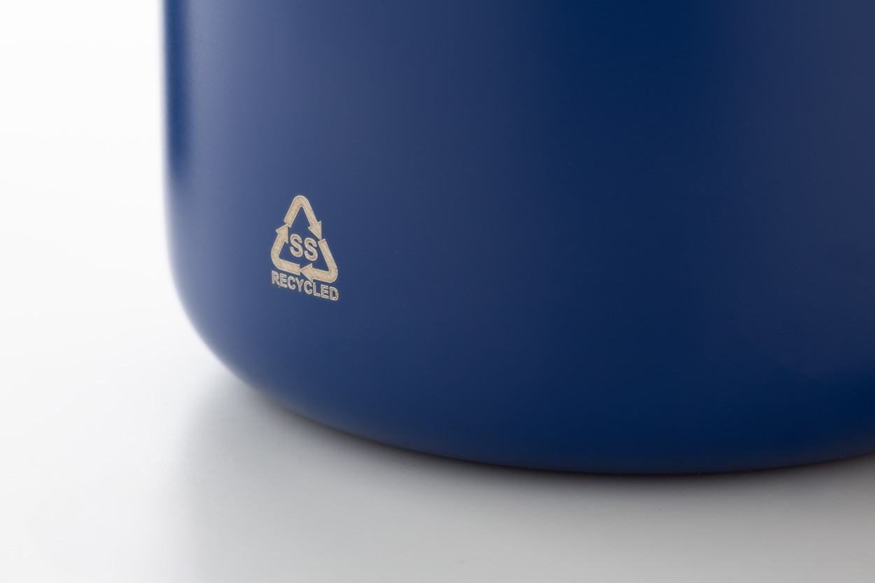 Doppelwandiger Thermobecher aus recyceltem Edelstahl mit Holzgriff. Füllmenge: 350 ml.