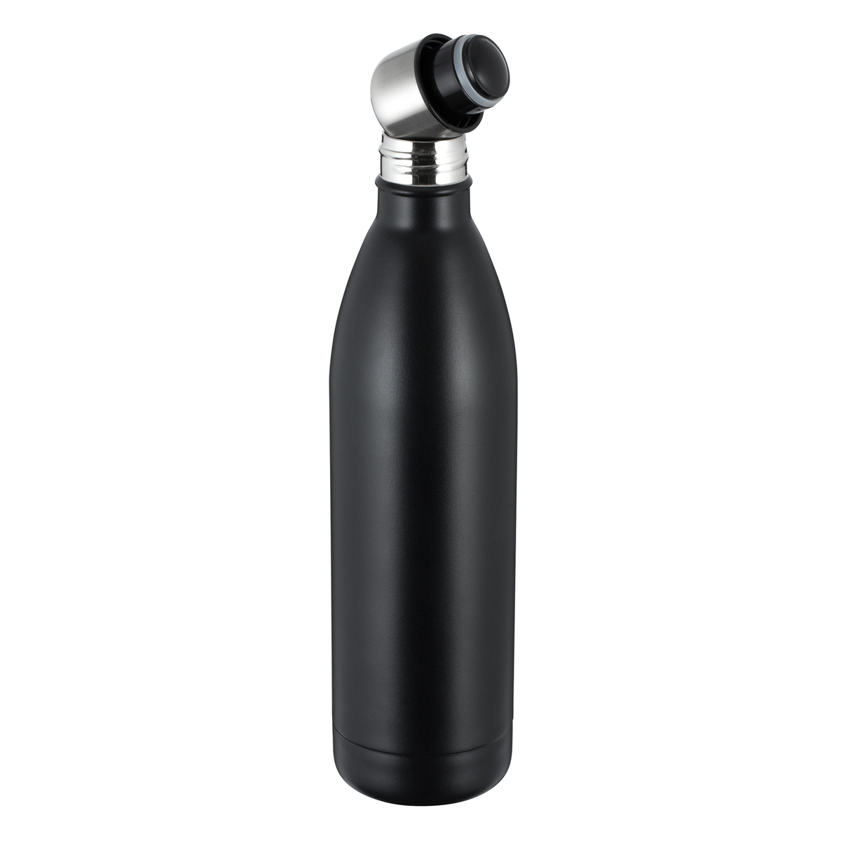 Die doppelwandige Thermo Trinkflasche fasst 750 ml und ist somit die größere Alternative zu unserem ursprünglichen Modell. Sie hält Ihre Getränke zuverlässig heiß oder kalt und besticht durch ihre besonders große, prominente Logofläche. Sie ist entweder mit weißer oder schwarzer Pulverbeschichtung oder in Edelstahl matt silber mit Antifingerprint-Beschichtung erhältlich. Der Drehverschluss schützt vor dem Auslaufen.