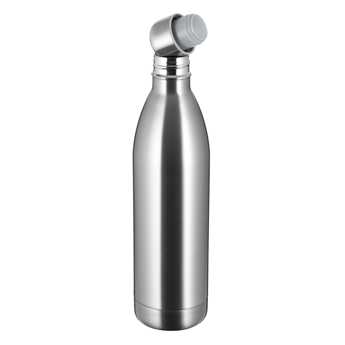 Die doppelwandige Thermo Trinkflasche fasst 750 ml und ist somit die größere Alternative zu unserem ursprünglichen Modell. Sie hält Ihre Getränke zuverlässig heiß oder kalt und besticht durch ihre besonders große, prominente Logofläche. Sie ist entweder mit weißer oder schwarzer Pulverbeschichtung oder in Edelstahl matt silber mit Antifingerprint-Beschichtung erhältlich. Der Drehverschluss schützt vor dem Auslaufen.