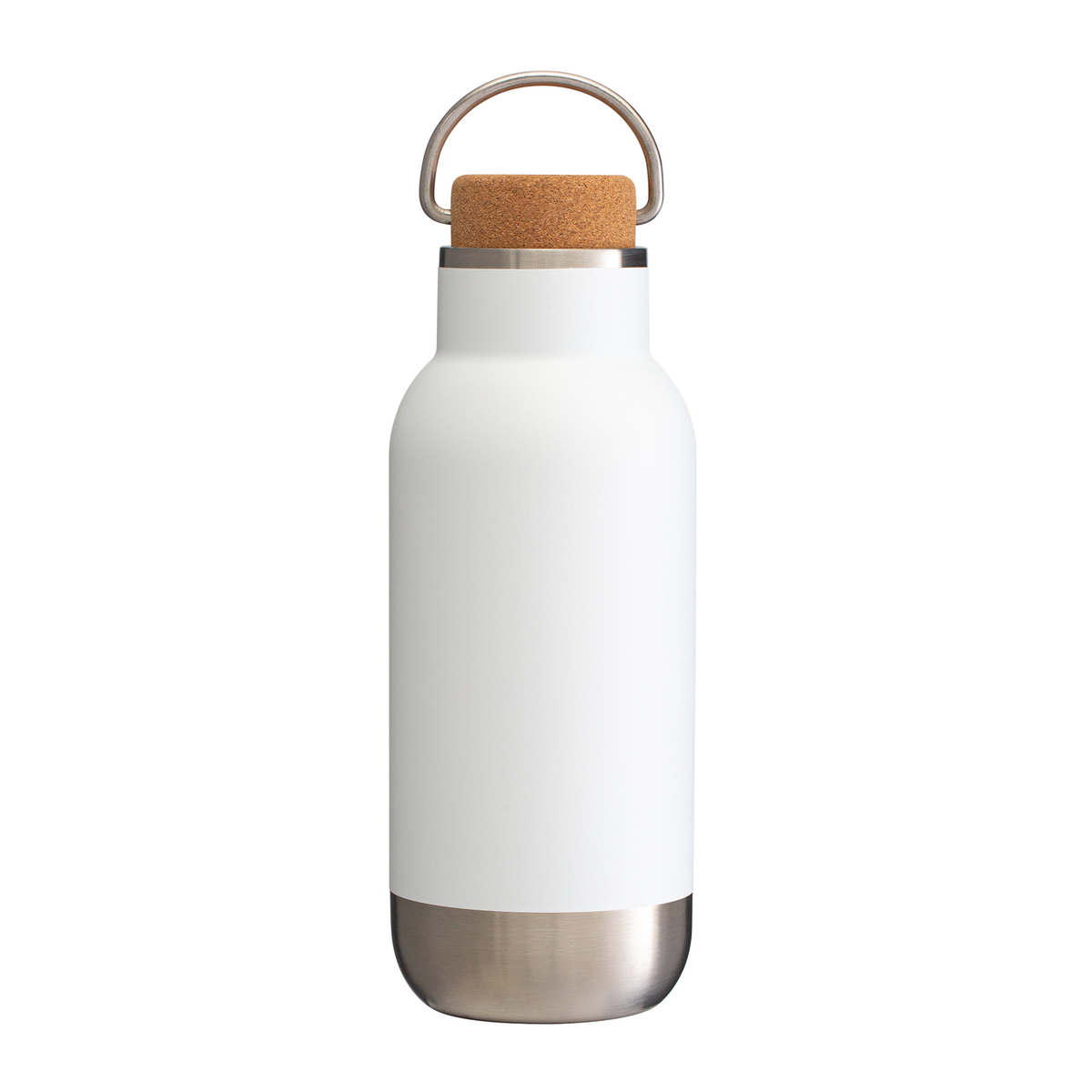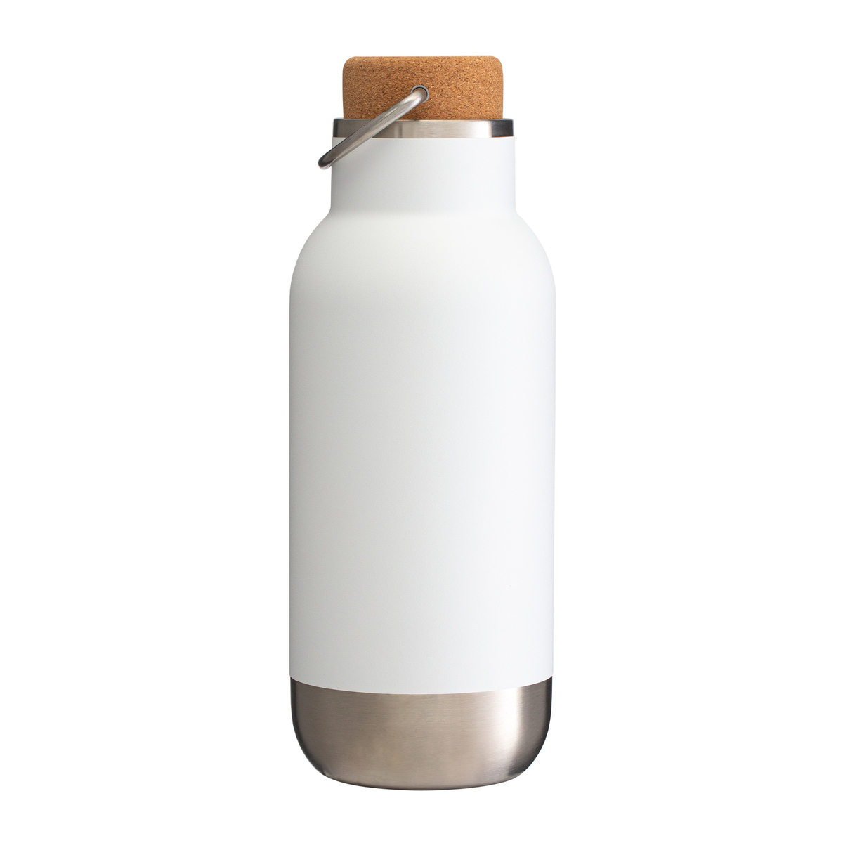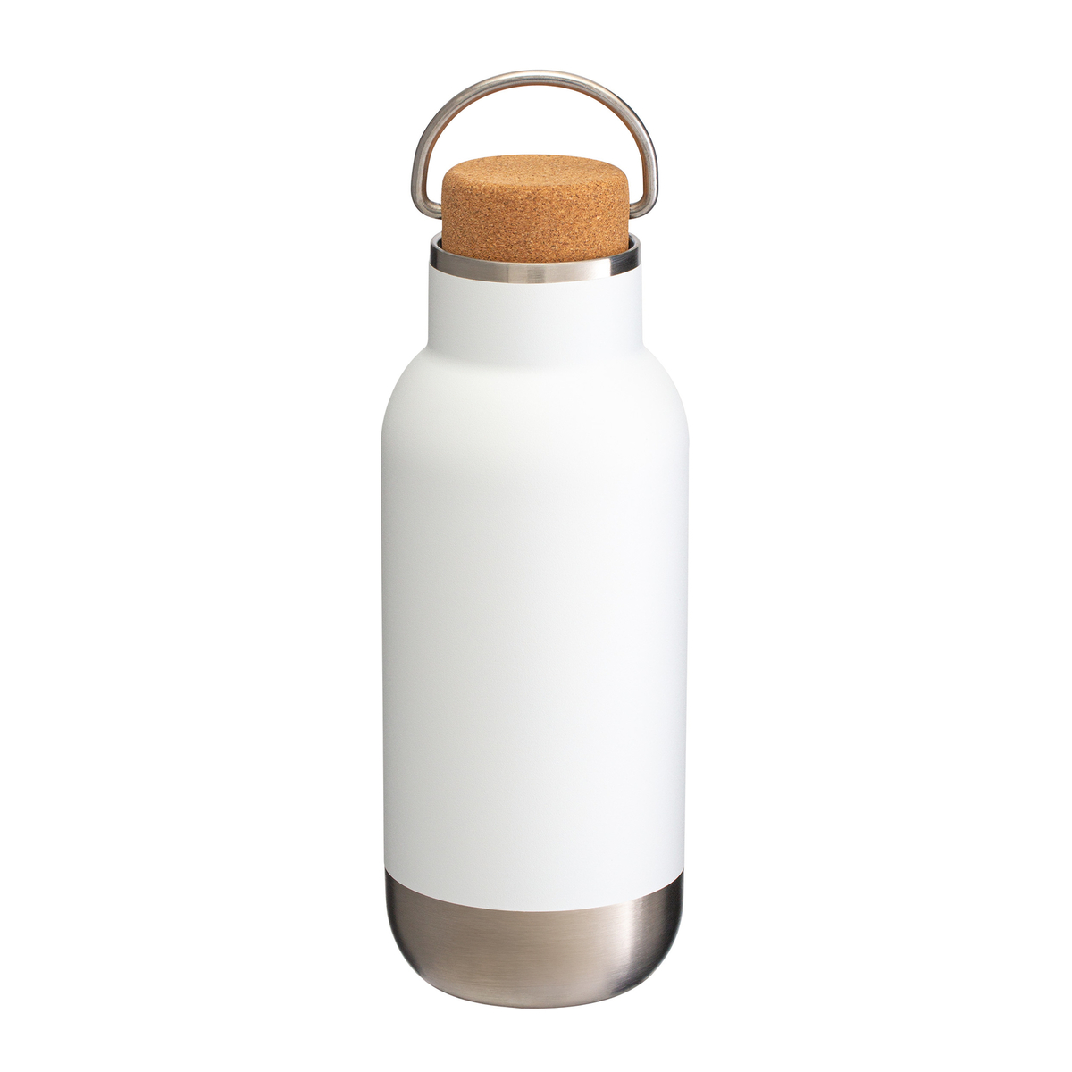 RETUMBLER-ORTADO-500 ist eine hochwertige Thermoflasche, gefertigt aus recyceltem Edelstahl und recyceltem Polypropylen-Kunststoff. Sie überzeugt durch das ästhetische Design, die angenehme Haptik sowie die herausragende Qualität. Dank der Doppelwandigkeit mit Vakuum-Isolierung hat die Trinkflasche optimale Isoliereigenschaften: Getränke darin bleiben bis zu 7 Stunden warm und bis zu 36 Stunden kalt. Die feine Pulverbeschichtung verleiht der Flasche eine äußerst angenehme Haptik. Ein Korkdeckel mit einem praktischen Henkel sorgt für einen harmonischen Look. Dank des Henkels kann die Trinkflasche bequem getragen oder an die Tasche angebracht werden – ideal für unterwegs. Durch die Silikondichtung und den Drehverschluss wird die Thermoflasche sicher verschlossen und damit auslaufgeschützt. So ist die Trinkflasche geeignet für kohlensäurehaltige Getränke. Der Artikel kann bedenkenlos in der Spülmaschine gereinigt werden. Beachten Sie: Der Korkdeckel ist nicht spülmaschinenfest!Die Optionen für die Veredelung beinhalten Lasergravur, Tampondruck und UV Druck auf dem Korpus. Eine hochwertige Papierverpackung und eine Faltschachtel runden den Artikel stilvoll ab.