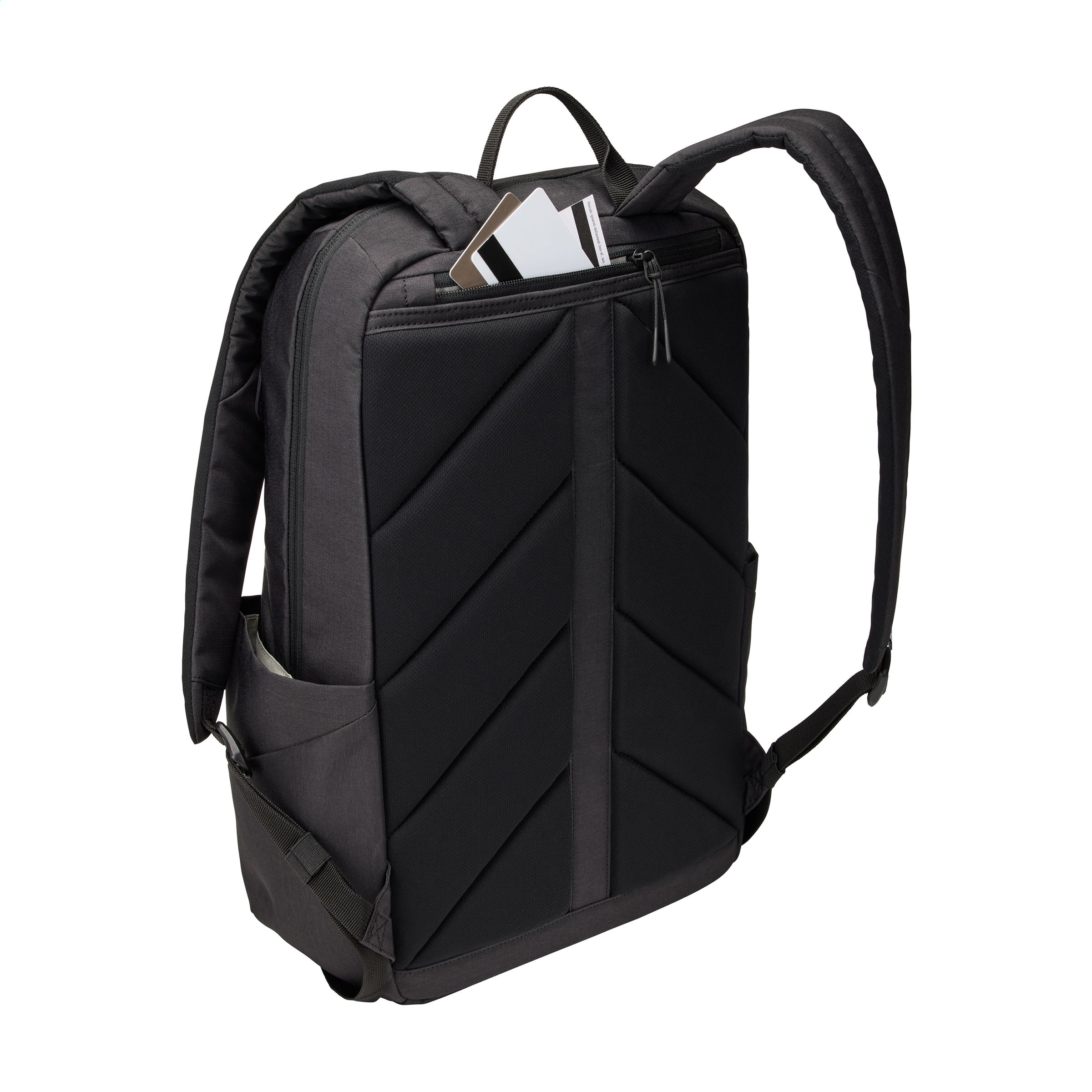 Eleganter Polyester-Rucksack der Marke Thule. Das großzügige Schutzfach bietet Platz für einen Laptop bis zu 15,6 Zoll und eine Einsteckfach für ein Tablet bis zu 10,5 Zoll. Die Vordertasche mit Druckknopfverschluss bietet schnellen Zugriff auf Telefon, Schlüssel und anderes Zubehör. Mit Seitentaschen und verstecktem Reißverschlussfach auf der Rückseite. Die verstellbaren Schulterriemen und das schaumstoffgepolsterte Rückenteil garantieren einen hervorragenden Tragekomfort. Völlig gefüttert. Der ideale Rucksack für Pendler. Fassungsvermögen ca. 20 Liter.