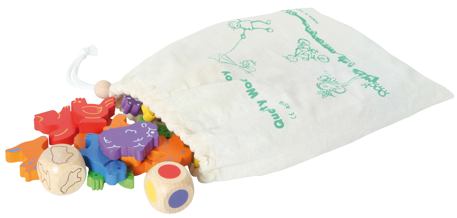 Cleveres Zuordnungsspiel für 2 - 4 Kinder! Inhalt: 4 Spielbretter, 36 Tierfiguren, 2 Würfel - alles aus Holz. Man trainiert beim Spiel Konzentration, Gedächtnis, Reaktionsfähigkeit, lernt verschiedene Tiere und Farben kennen '