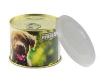 In der für Hundefutter bekannten Konservendose sind die Leckerli-Made in Germany- verpackt. Einfach Deckel öffnen und verfüttern. Die Werbebanderole bietet viel Platz für Ihre individuelle Werbebotschaft und verleiht der Dose einen...