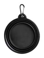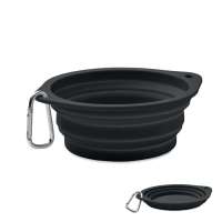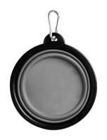 Faltbarer, transportierbarer Trink- oder Futternapf für Haustiere aus Silikon mit Karabiner. Füllmenge: 350ml. Der Karabiner ist NICHT als Sicherung beim Klettern geeignet.