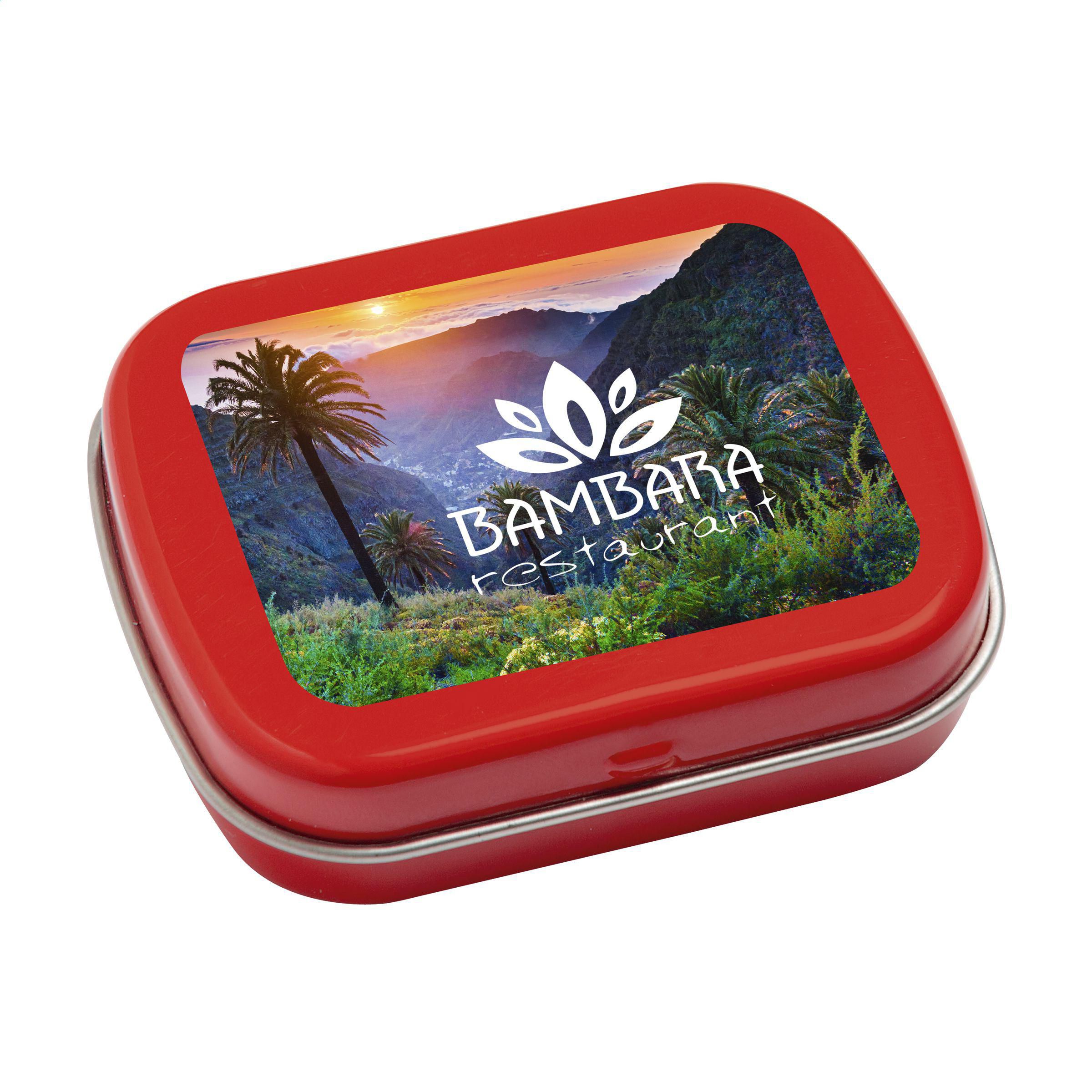 Süßigkeitendöschen mit ca. 25 g frischen Pfefferminz.