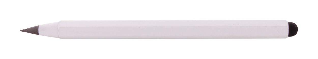 Langlebiger, tintenloser Stift aus recyceltem Aluminium mit Touchpen und Spitze aus einer Metalllegierung, welcher das Papier oxidieren lässt. Der sechseckige Schaft beinhaltet ein 11 cm und 4 Zoll Lineal. Dieser Stift schreibt ähnlich wie ein Bleistift und kann auch wegradiert werden.