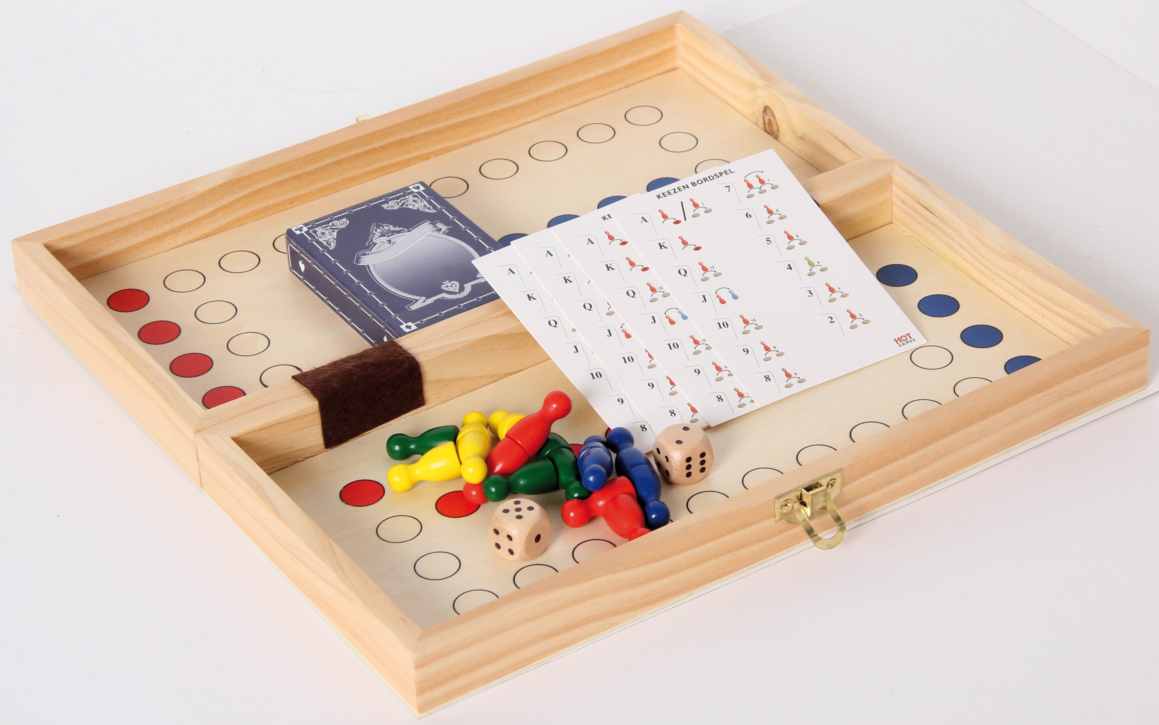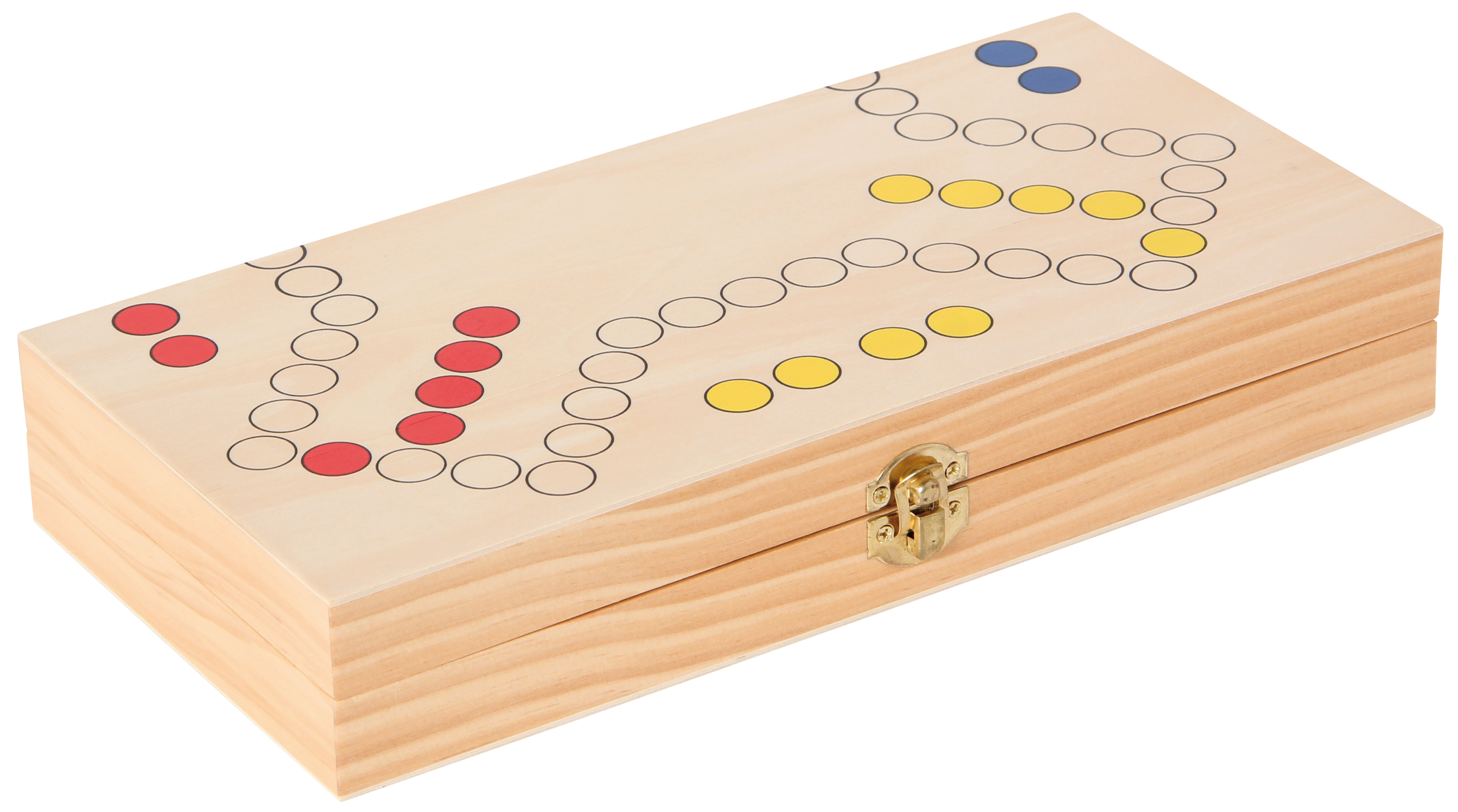 Das spannende Familienspiel für zwei oder vier Spieler ähnelt dem Ludo, wird jedoch mit Karten und Würfeln gespielt. Inhalt: Beidseitig bedruckte Kassette für 2 oder 4 Spieler, 16 magnetische Spielfiguren, 2 Holzwürfel, 1 Kartenspiel sowie die Spielanleitung.