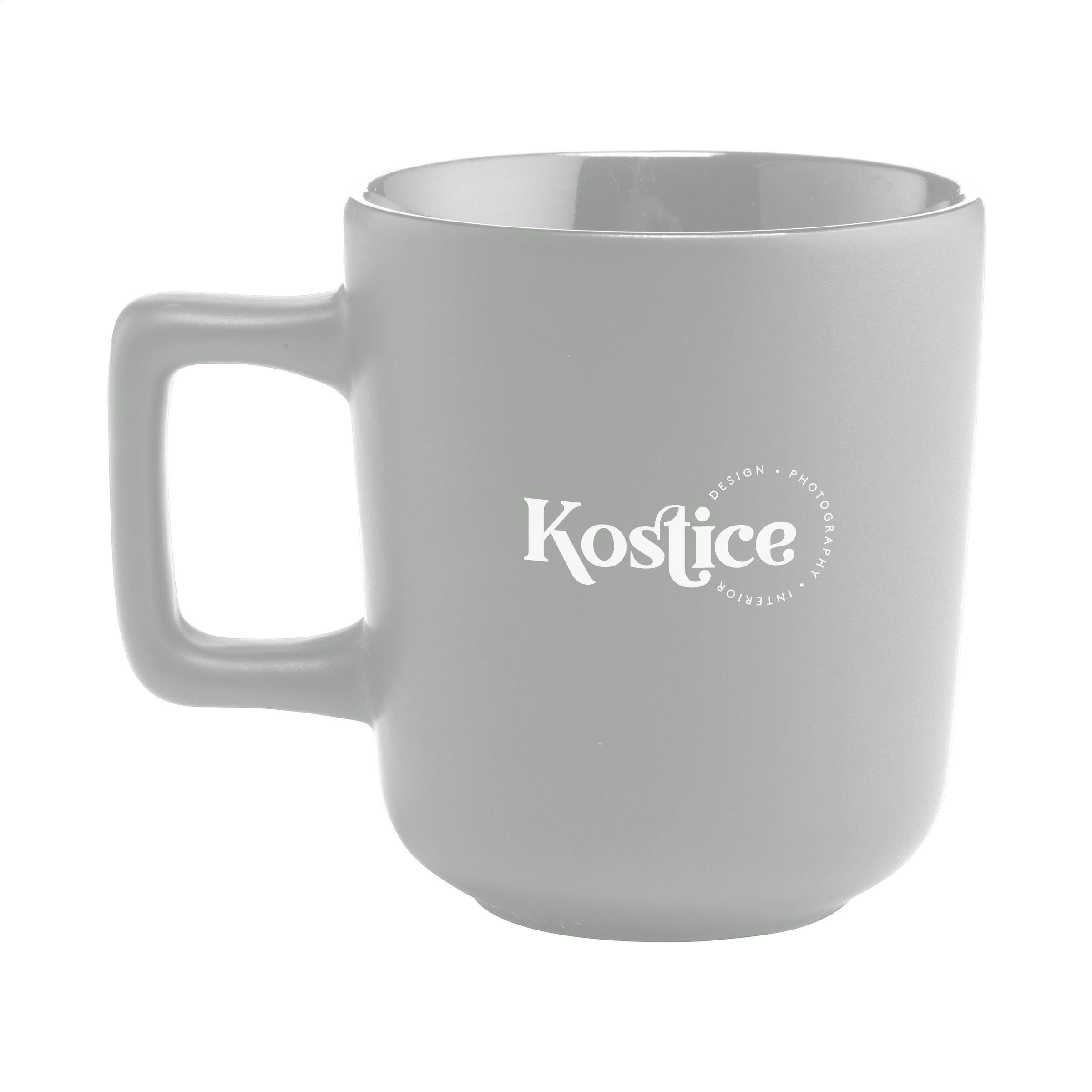 Becher aus hochwertiger Keramik mit einem auffälligen Henkel. Außen matt und innen hochglänzend lackiert. Spülmaschinenfest. Der Druck ist spülmaschinengeprüft und zertifiziert: EN 12875-2. Fassungsvermögen 280 ml. NOTIZ: Der weiße Becher kann nicht mit einer Lasergravur versehen werden, da diese nicht ausreichend sichtbar ist.