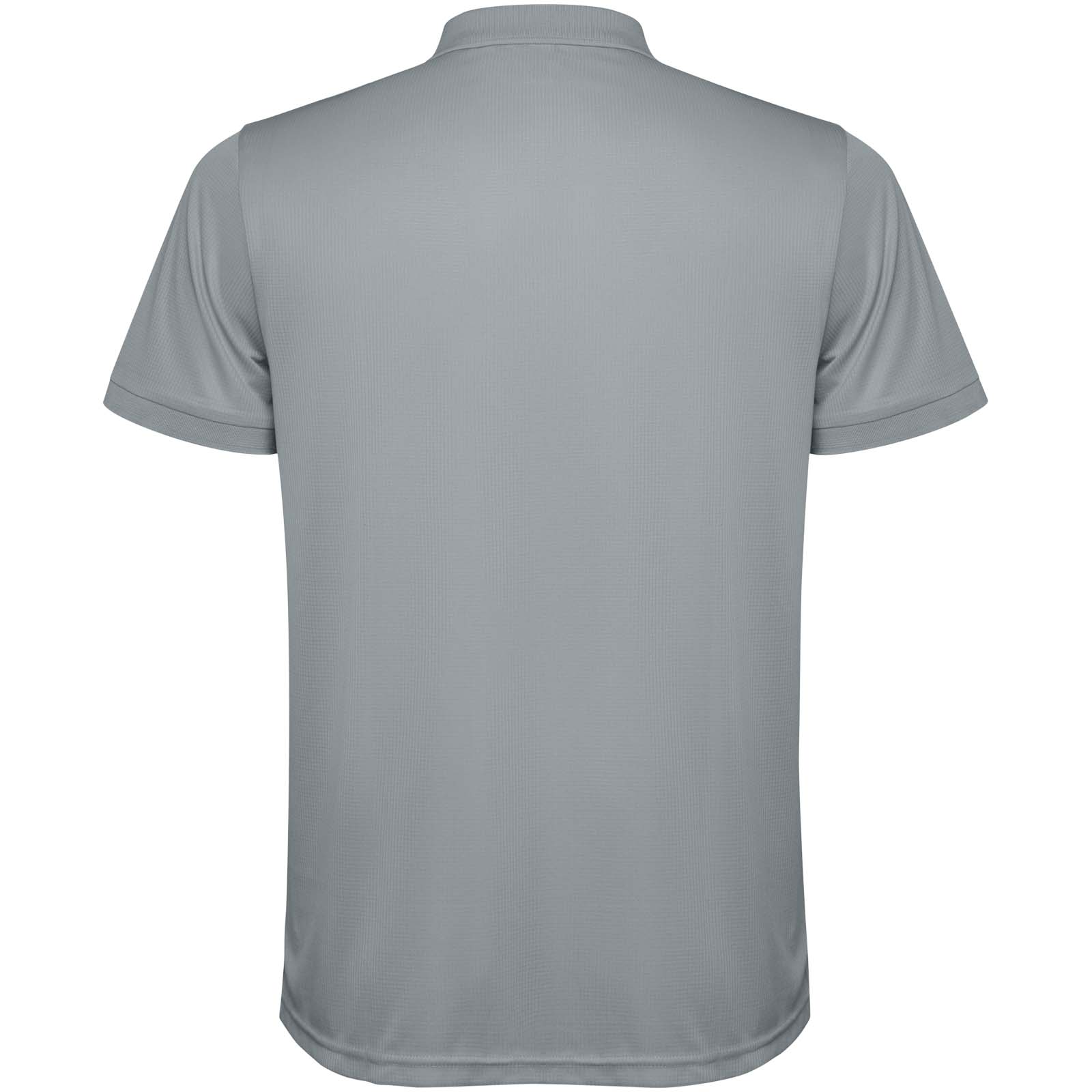 Kurzärmeliges Poloshirt für Herren. Verstärkte und verdeckte Nähte am Innenkragen. 1×1-Rippstrick an Bündchen und Kragen. Seitennähte. Knopfleiste mit 3 Knöpfen und Seitenschlitze.
