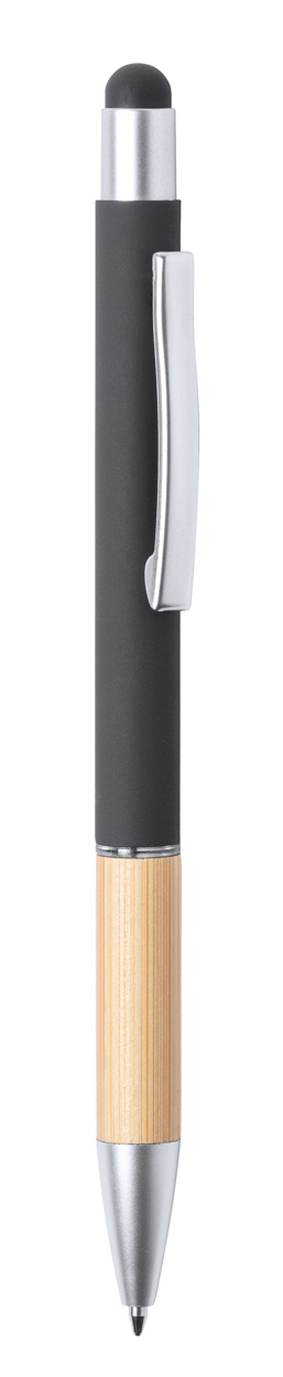 Kugelschreiber mit Touchpen aus Aluminium und Griff aus Bambus sowie mattem Finish, blauschreibend.