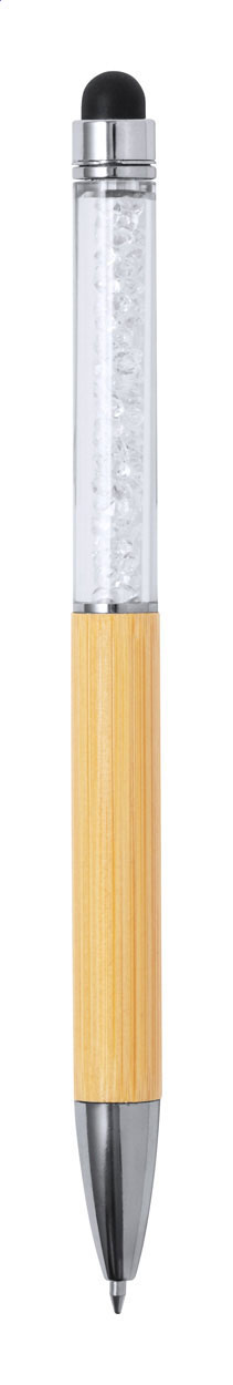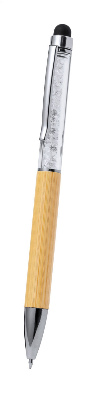 Drehkugelschreiber aus Bambus mit Touchscreen-und transparentem Oberteil mit Kristallen. Blauschreibend.