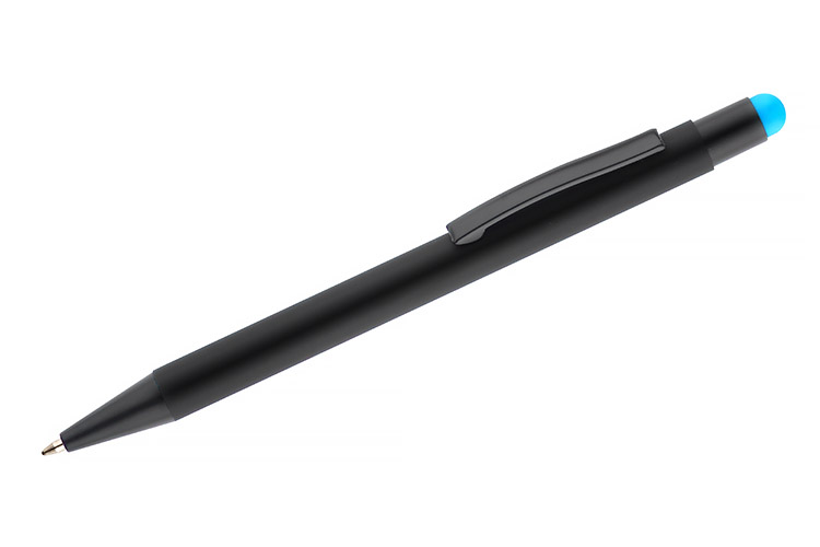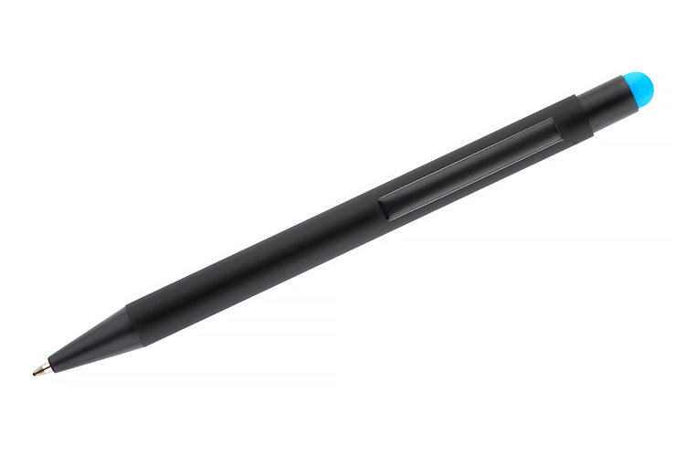 NIRO ist ein Kugelschreiber mit einem einzigartigen Effekt seiner Markierung. Die Gravurfarbe ähnelt dem Touch-Tipp für Touchscreens. Der Stiftkörper besteht aus Aluminium und ist mit einer gummierten Soft-Touch-Beschichtung versehen. Zierteile in schwarz. Automatischer Kugelschreiber Ersatzmine Typ G2 in blau.