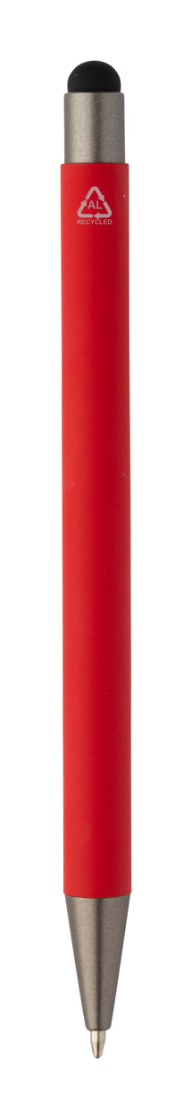 Kugelschreiber mit Touchpen aus recyceltem Aluminium mit Softtouch Oberfläche und Teilen in Gunmetal-Optik. Blauschreibend.