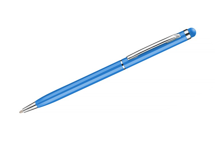 Neue, verbesserte Version eines sehr bekannten Modells. TIN 2 ist ein dünner, Metallkugelschreibermit einerfarbigen Touchspitze. Der Kugelschreiberverfügt über einen Twist-Mechanismus. Blaue Mine.