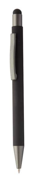 Aluminium-Kugelschreiber mit Touchpen mit gummierter Oberfläche, blauschreibend.