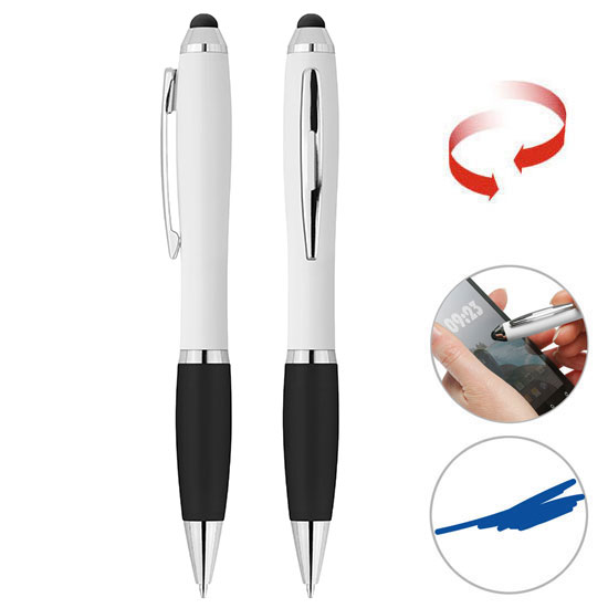 Touchscreen-Drehkugelschreiber "Neptun" mit Gummispitze und Softgripzone, Mine X-20, blau schreibend