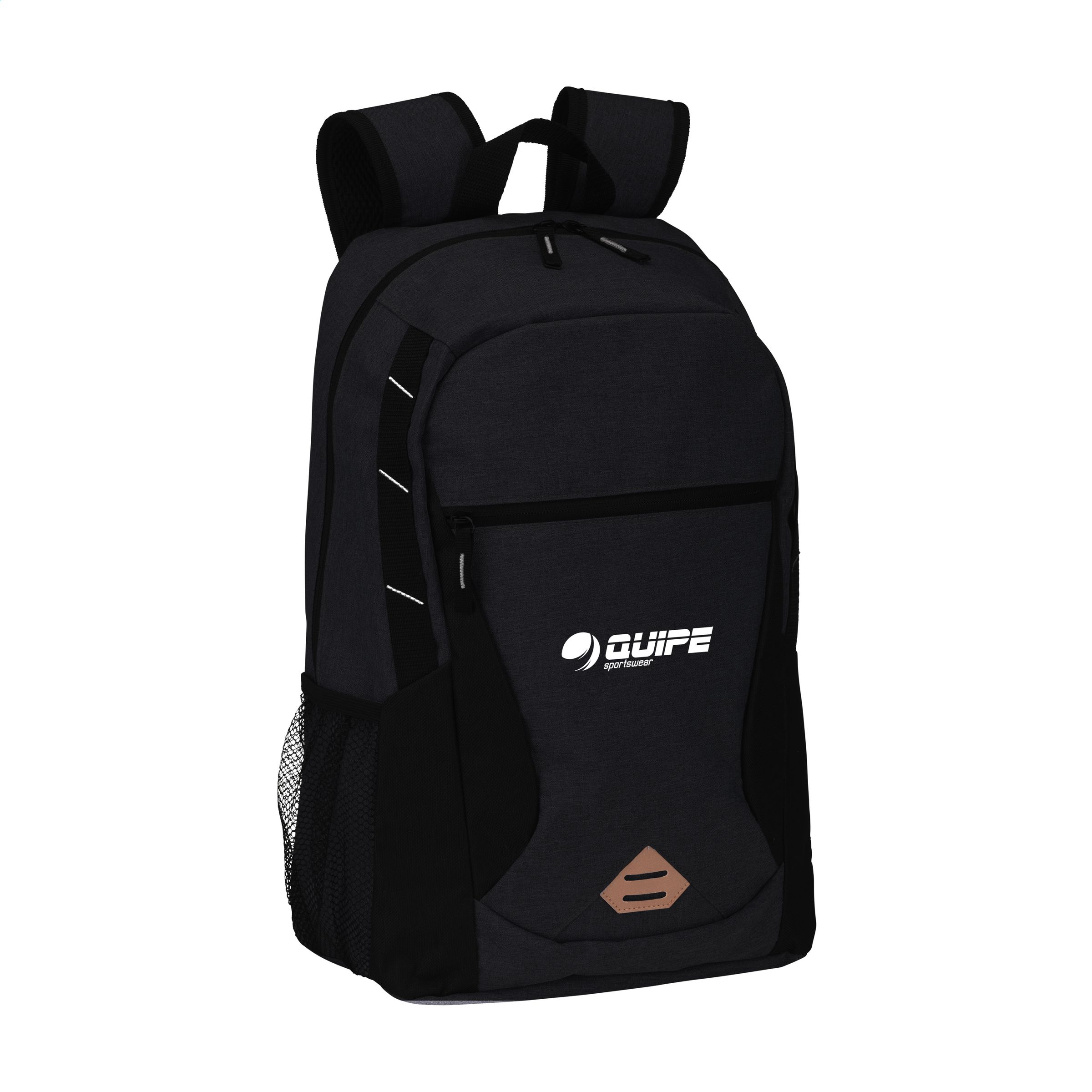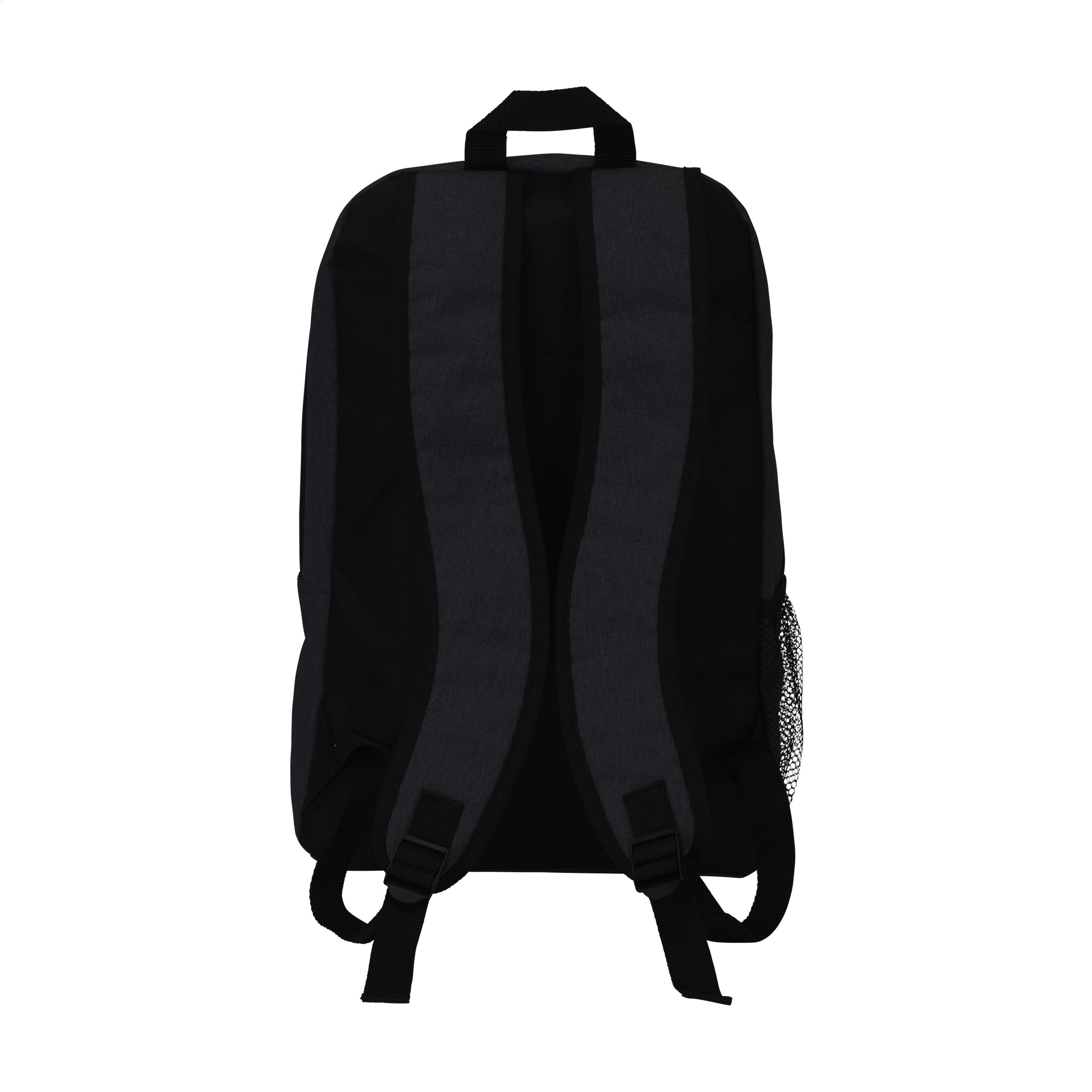 Rucksack aus 600D/300D Polyester. Mit geräumigem Hauptfach, Fronttasche mit Reißverschluss, Netzfach, verstellbaren, gepolsterten Mesh-Schulterriemen, gepolsterter Rückseite und Aufhängeschlaufe.