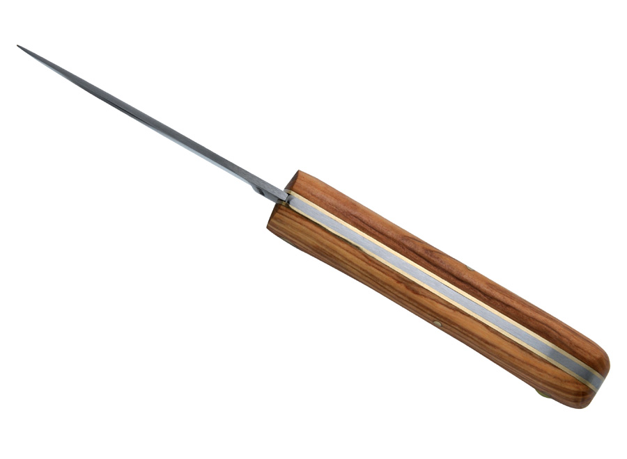 Klappbares Messer mit Klinge aus rostfreiem 420er Edelstahl. Griff aus Olivenholz. Messerschließung durch Zwangsfeder. Wird in einem grau melierten Etui aus recyceltem RPET geliefert. Die Vorteile in Kürze: - Klinge aus rostfreiem 420er Edelstahl, der eine maximale Beständigkeit gegen Oxidation gewährleistet und ein einfaches Schärfen ermöglicht - Ein Klapp- und Schließmechanismus (frz. mécanisme à cran forcé), das bei den meisten klassischen Messern verwendet wird. - Ein Griff aus Olivenholz das diesem Messer einen authentischen und regionalen Charakter verleiht. - Ein abgerundeter und verdickter Griff für einen besseren Halt. - Wird mit einem Etui aus RPET (recycelte Verpackung) anstatt einer wegwerfbaren Kartonverpackung geliefert.