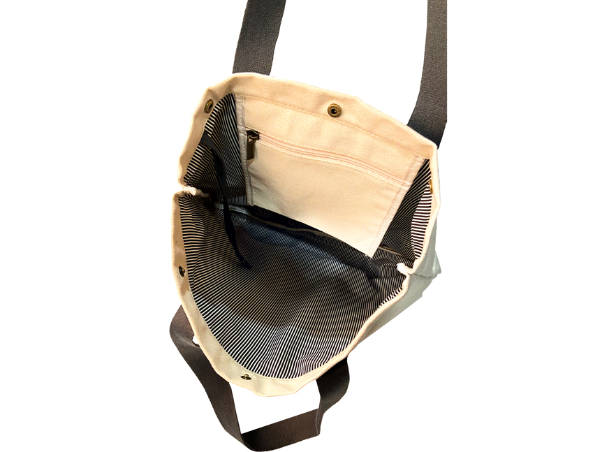 Elegante und robuste Tragetasche aus 100 % Baumwoll-Canvas von 454 g / m², wiederverschließbar mit drei Druckknöpfen. Verstärkte und eingefasste Überlappungsnähte. Innentasche mit Reißverschluss. 145 g / m² bedrucktes Futter. Griffe aus Baumwollköper. Innenschlaufe mit Metallkarabiner zum Aufhängen von Schlüsseln. Fassungsvermögen: 15L. Die Vorteile in Kürze: - 100% Baumwoll-Canvas mit einer Dichte von 454 g / m² - Griffe aus Baumwollköper -Innentasche mit Reißverschluss - Innenfutter bedruckt und einem Gewicht von 145 g / m².