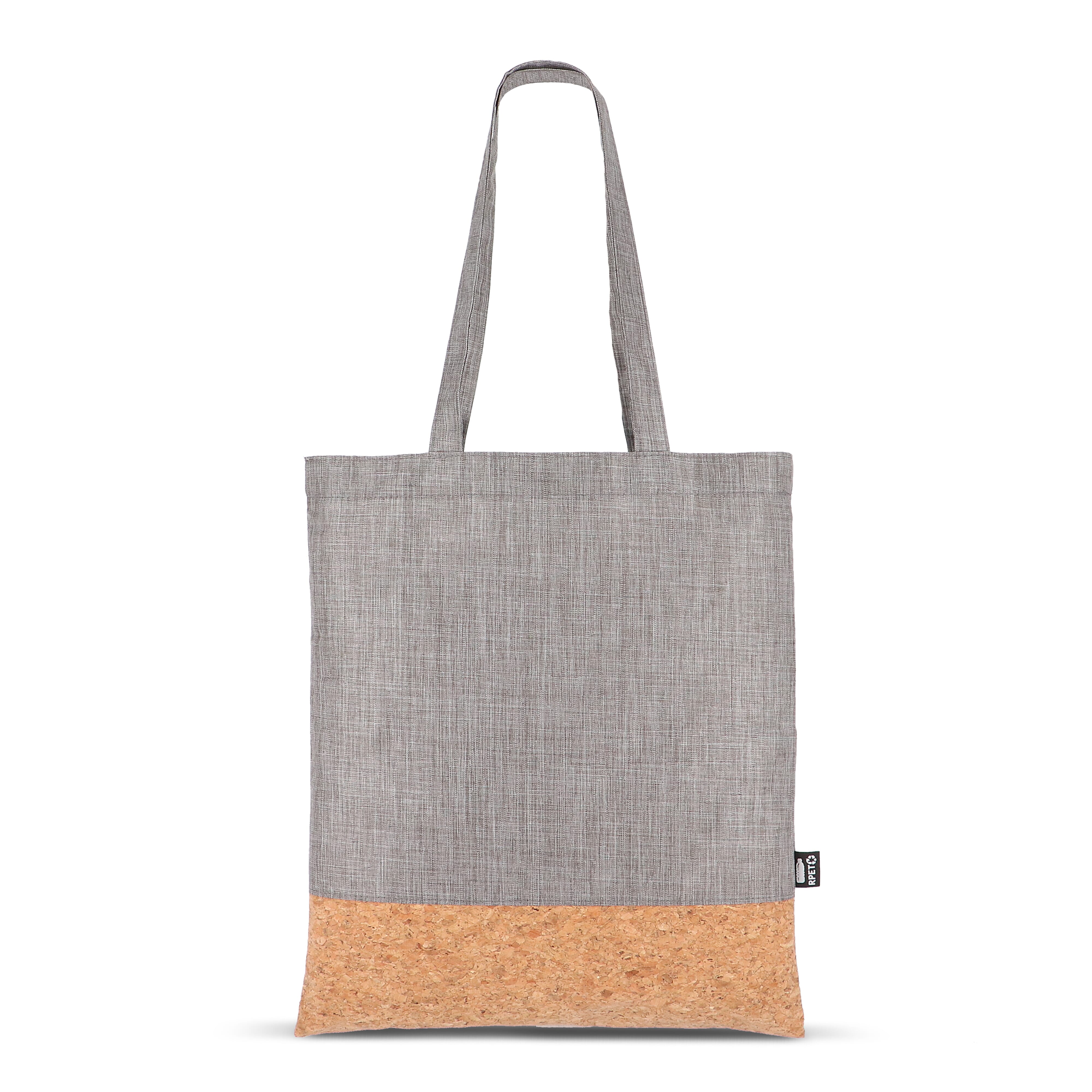 Diese strapazierfähige Tragetasche aus 300D recyceltem PET und Kork trägt ein maximales Gewicht von 10 kg. Perfekt für den täglichen Gebrauch. Hergestellt aus R-PET.