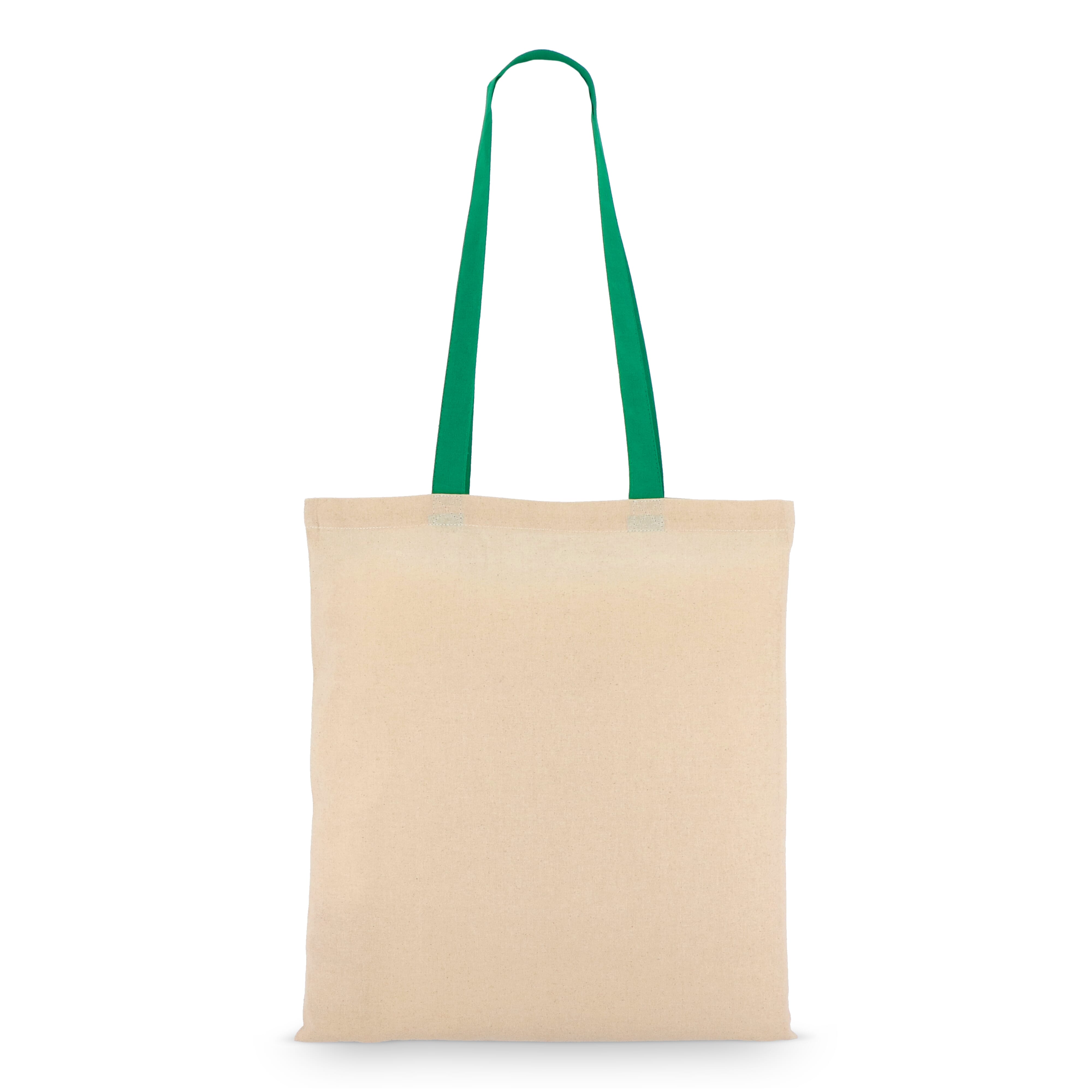 Klassische Tragetasche aus 140 g / m² Baumwolle mit natürlichem Körper und kontrastfarbenen Griffen. Lange Griffe für bequemes Tragen über der Schulter. Oeko-Tex®-zertifiziert. Ideal für Veranstaltungen, den Einzelhandel oder den täglichen Gebrauch.