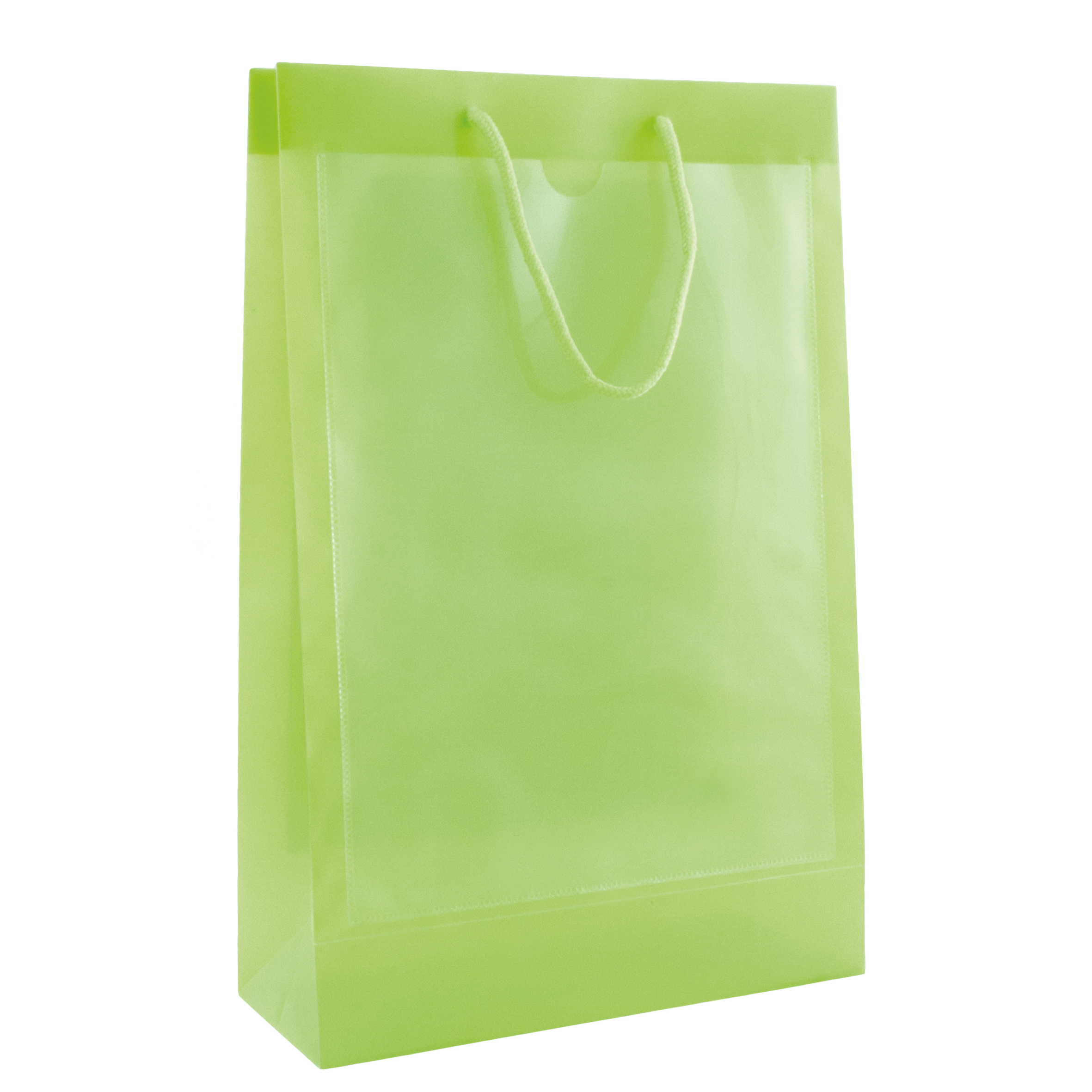 Tragetasche transparent mit 2 Fenstern A4 Inlay, 260 x 400 x 100 mm, mit Kordeln: 5 x 150 mm, Aus recyclebarem Polypropylen.