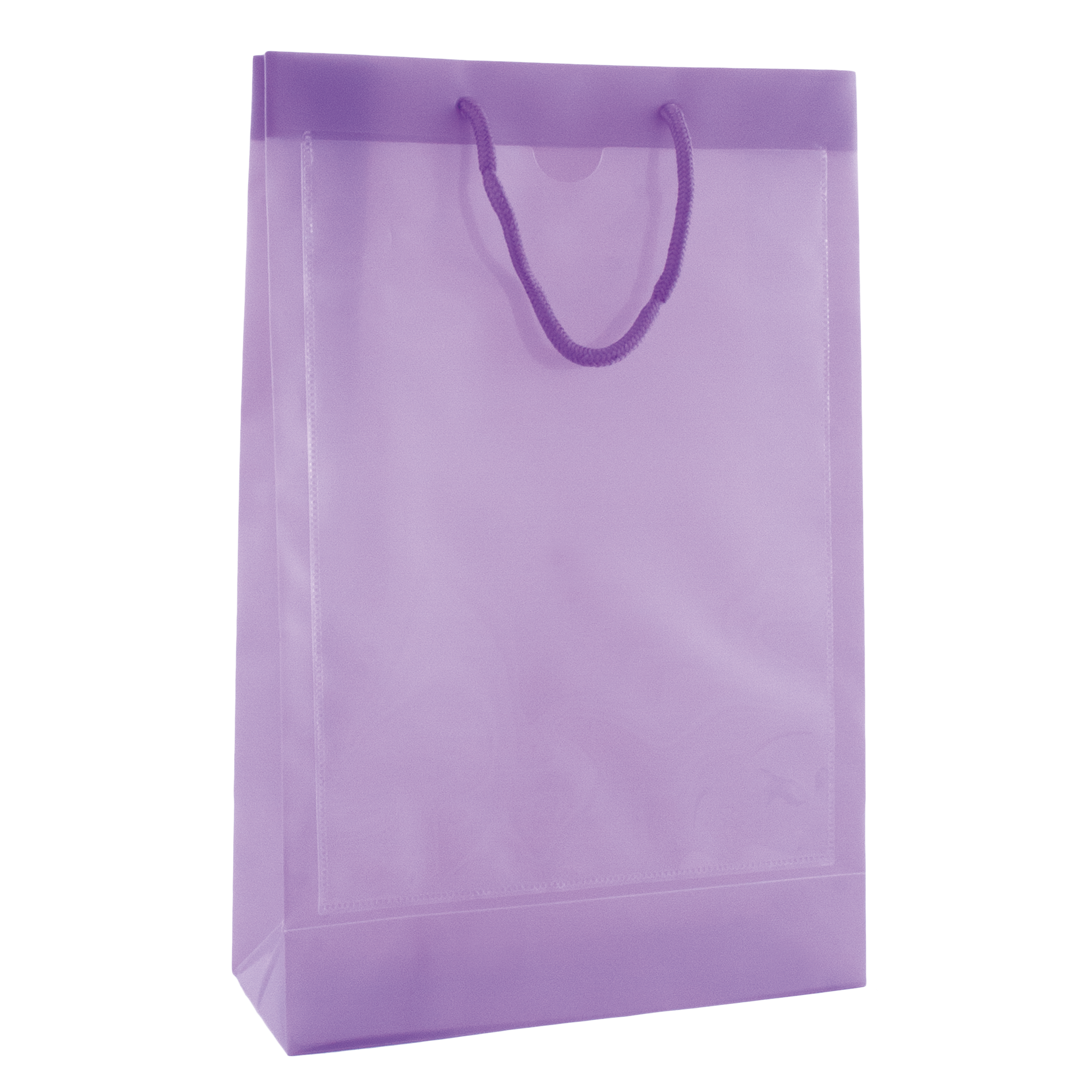 Tragetasche transparent mit 2 Fenstern A4 Inlay, 260 x 400 x 100 mm, mit Kordeln: 5 x 150 mm, Aus recyclebarem Polypropylen.