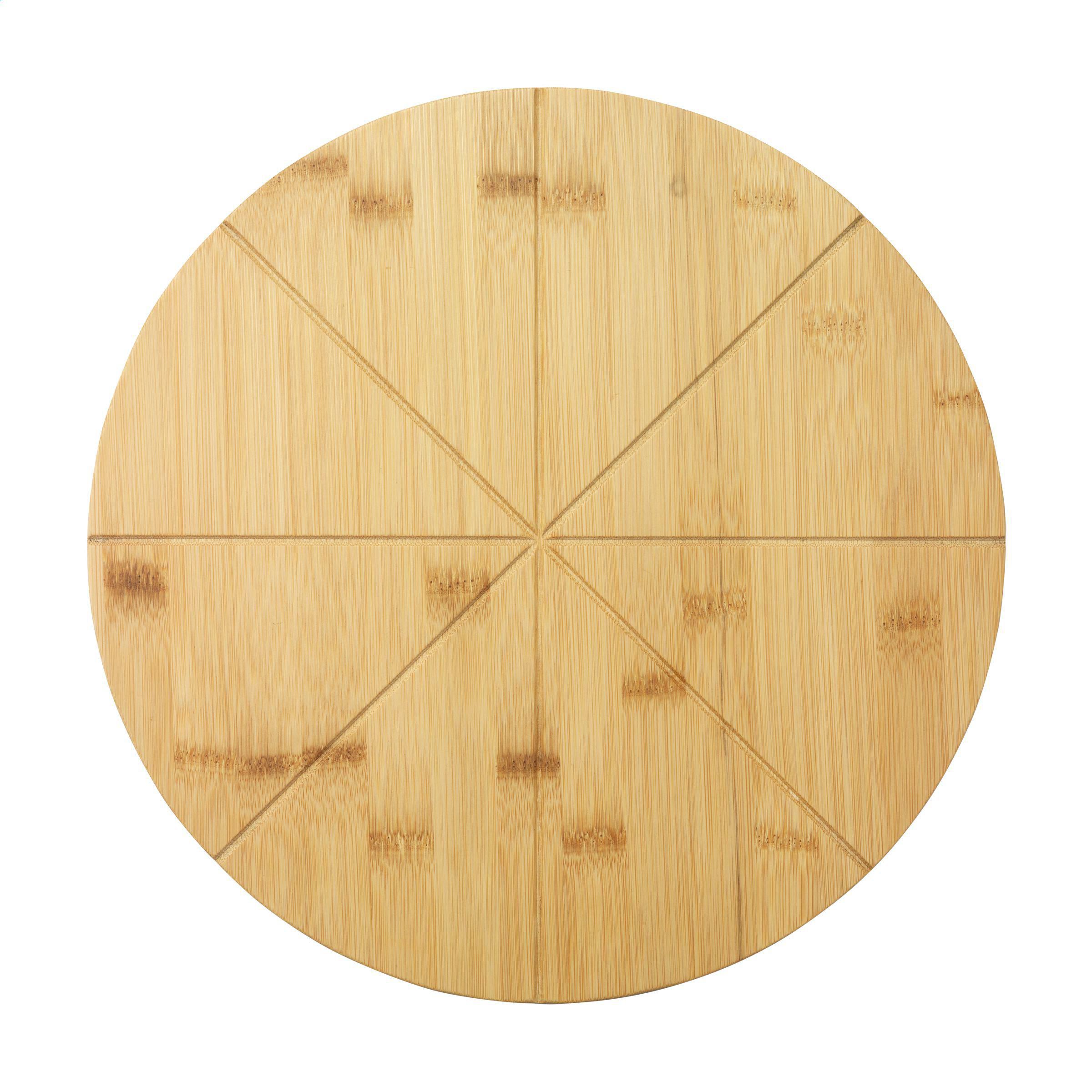 Dieses großzügige Brett aus FSC 100% zertifiziertem Bambus ist ideal für den vielseitigen Einsatz in der Küche. Auf der einen Seite bietet es eine großzügige Schneidefläche, auf der anderen Seite praktische Kerben speziell zum mühelosen Schneiden von Pizzastücken. Die umlaufende Rille im Schneidebrett fängt Fleisch- oder Fruchtsäfte auf, sodass die Arbeitsfläche sauber bleibt.Das Schneidebrett ist mit einem vegetarischen Öl aus Sojabohnen behandelt. Bambus ist von Natur aus antibakteriell, hygienisch und leicht zu reinigen.