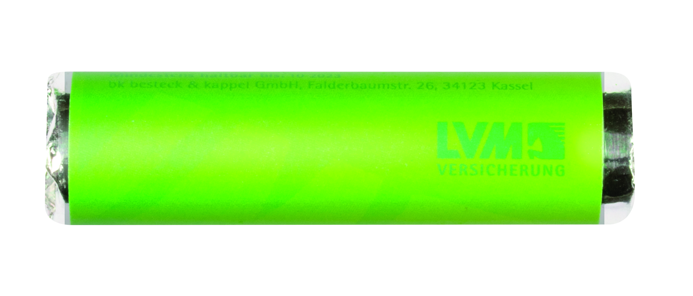 Handliche Röllchen mit 9 Traubenzucker-Pastillen "FRUIT", inkl. individueller 4c-Banderole. Druckart: Offsetdruck (Euroskala) Inhalt: ca. 5,2 g / 9 Traubenzucker-Pastillen, Preise in € pro 100 Stück!