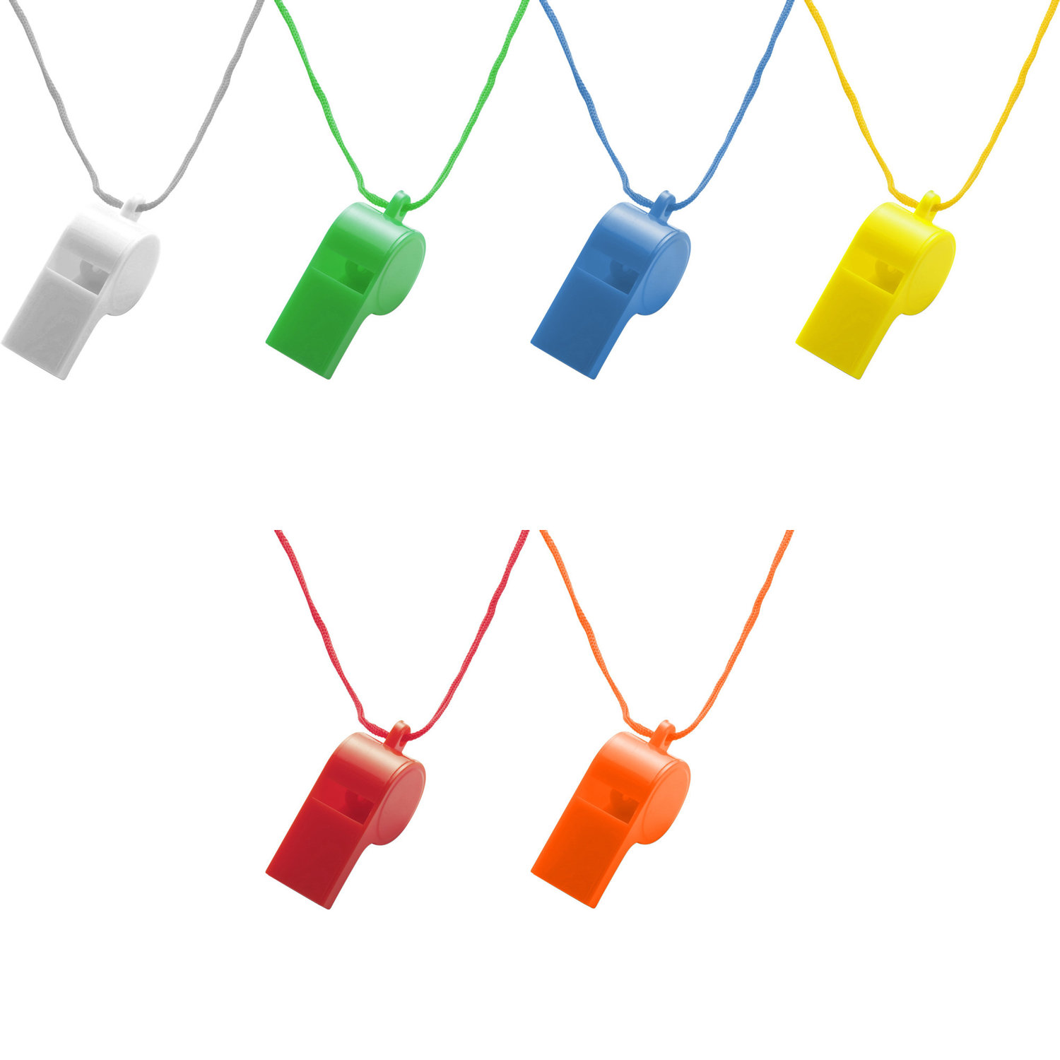 Trillerpfeife aus Kunststoff mit Halskordel (nur bestellbar pro Box mit 48 Stück - Preis pro Stck).