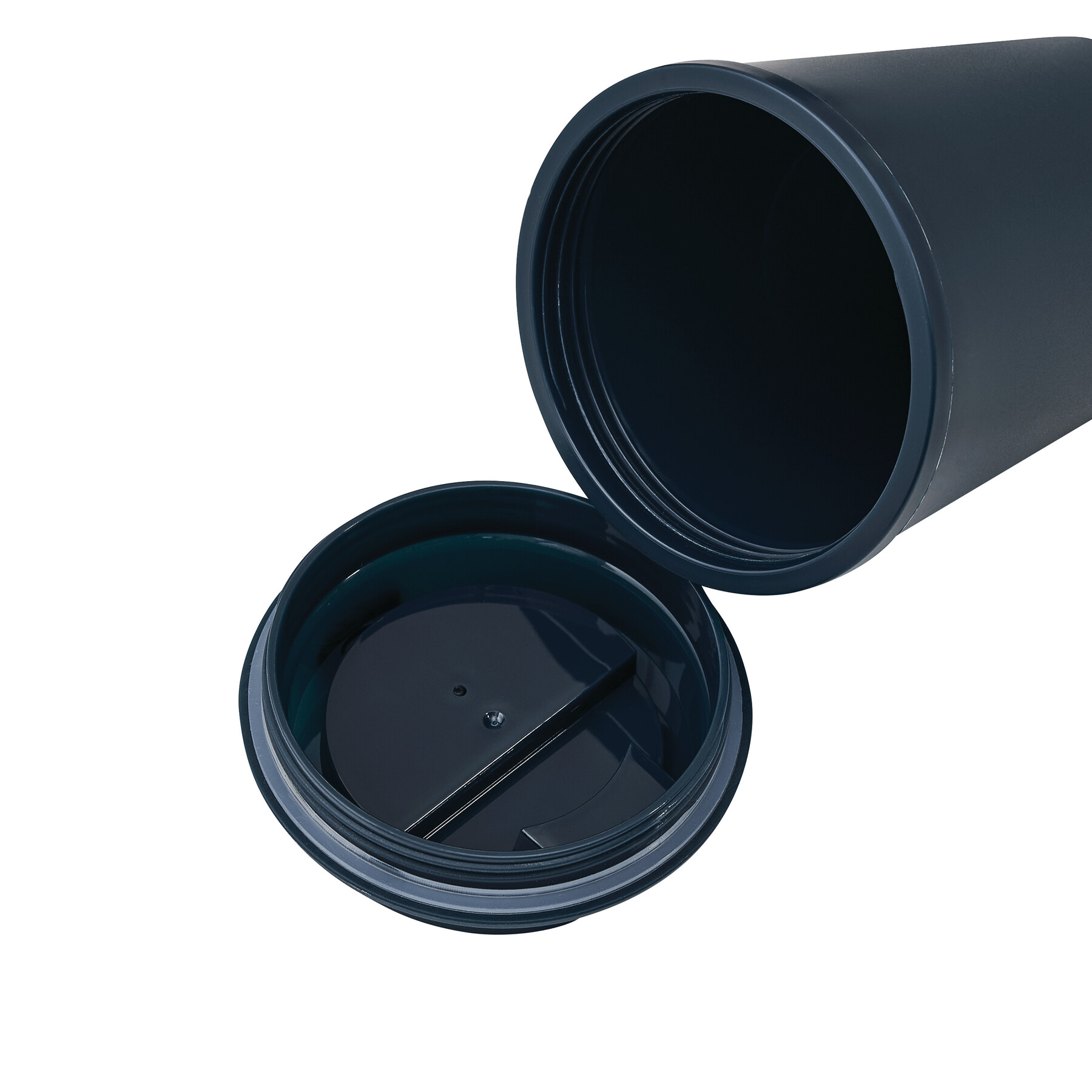 Trinkbecher FLEXICUP, doppelwandig: innen und außen aus Kunststoff, farbig passender Deckel mit sicherem Schraubverschluss, Silikon-Dichtring und integrierter Trinköffnung zum Aufklappen, Füllmenge ca. 350 ml, hält ca. 2 Stunden warm und bis zu 4 Stunden kalt