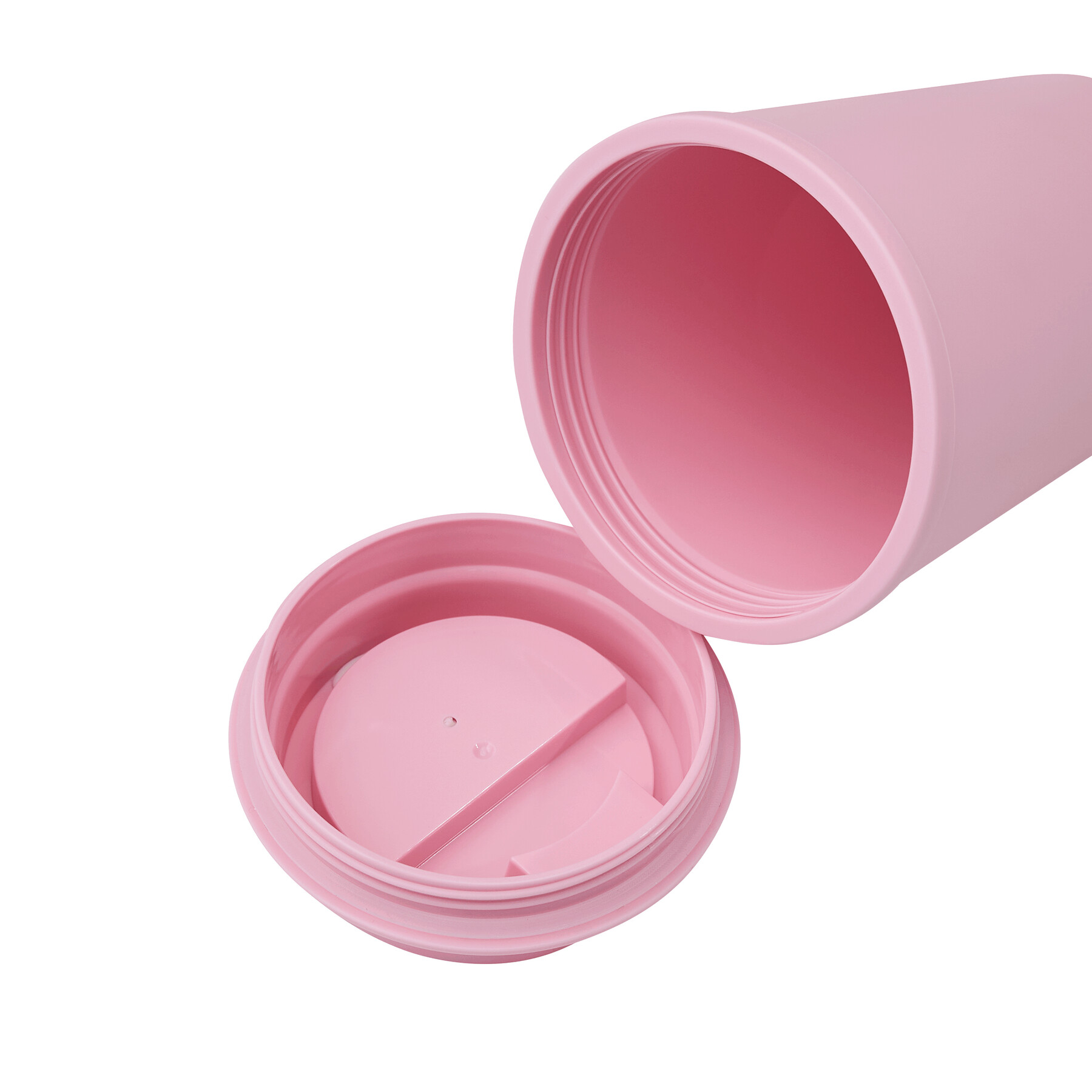 Trinkbecher FLEXICUP, doppelwandig: innen und außen aus Kunststoff, farbig passender Deckel mit sicherem Schraubverschluss, Silikon-Dichtring und integrierter Trinköffnung zum Aufklappen, Füllmenge ca. 350 ml, hält ca. 2 Stunden warm und bis zu 4 Stunden kalt