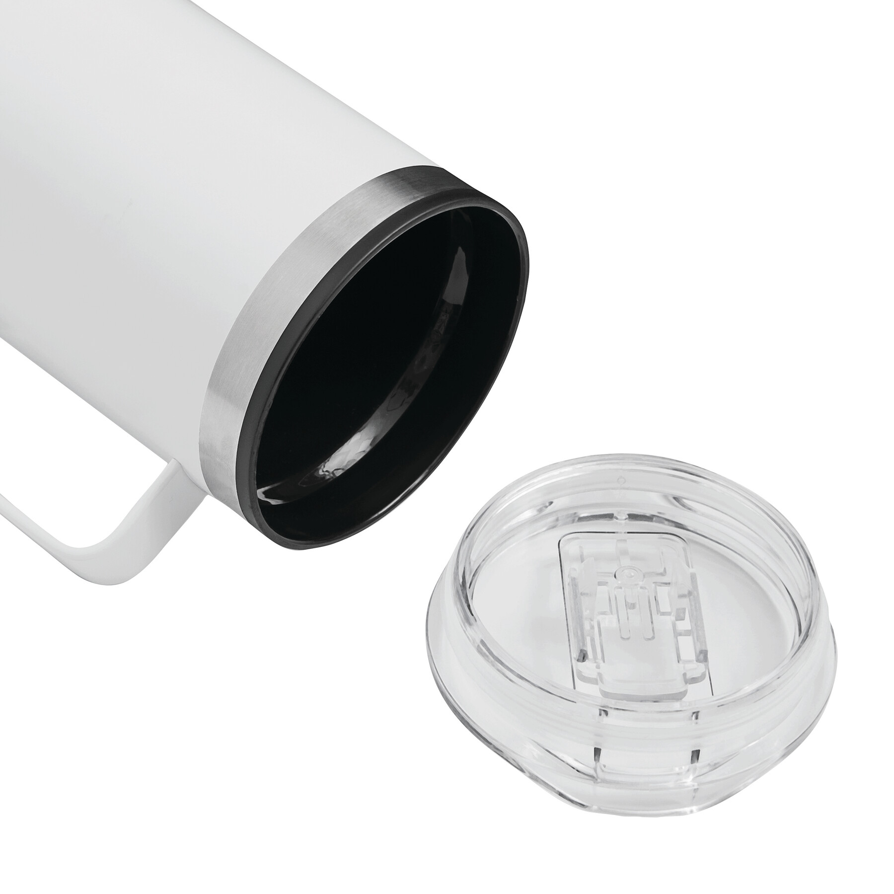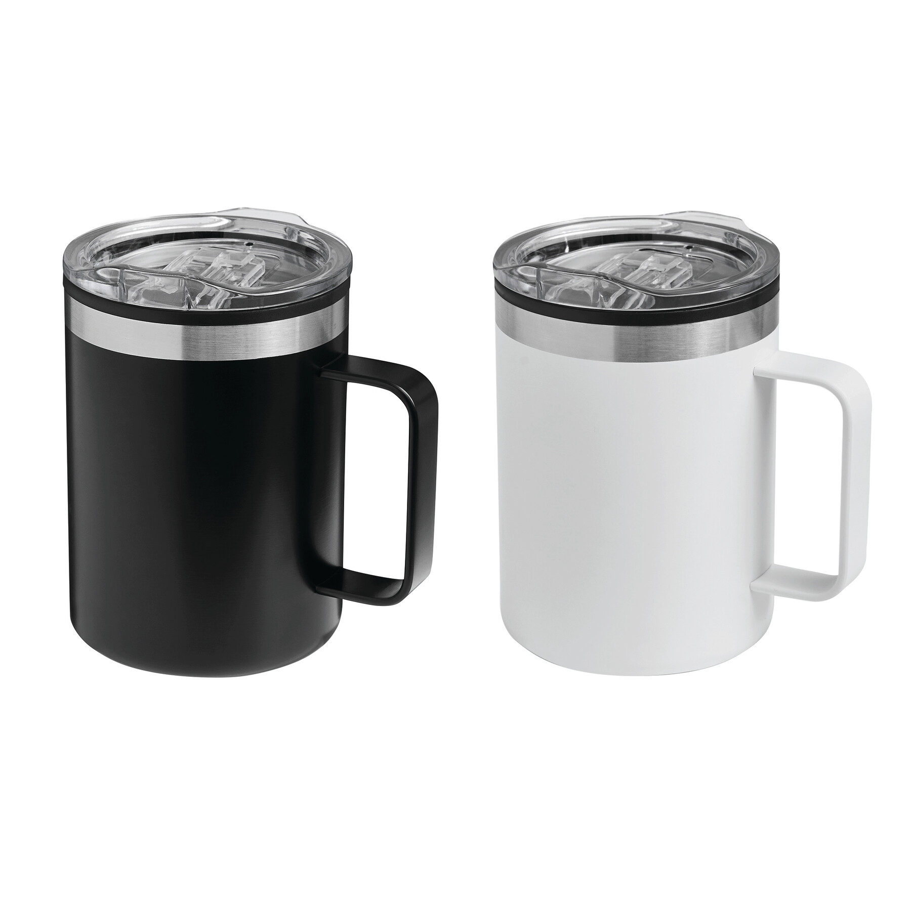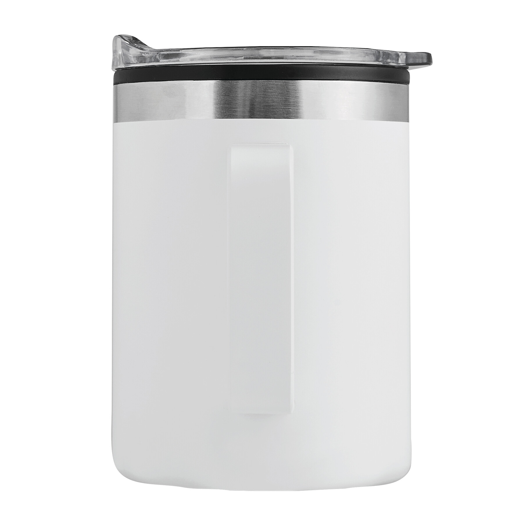 Trinkbecher STYLE MUG, doppelwandig: innen aus Kunststoff und außen aus Edelstahl, transparenter Kunststoff-Deckel mit Silikon-Dichtring und integrierter Trinköffnung zum Aufschieben, beschichteter Boden für gute Oberflächenhaftung, Füllmenge ca. 400 ml, hält ca. 2 Stunden warm und bis zu 4 Stunden kalt, in Box
