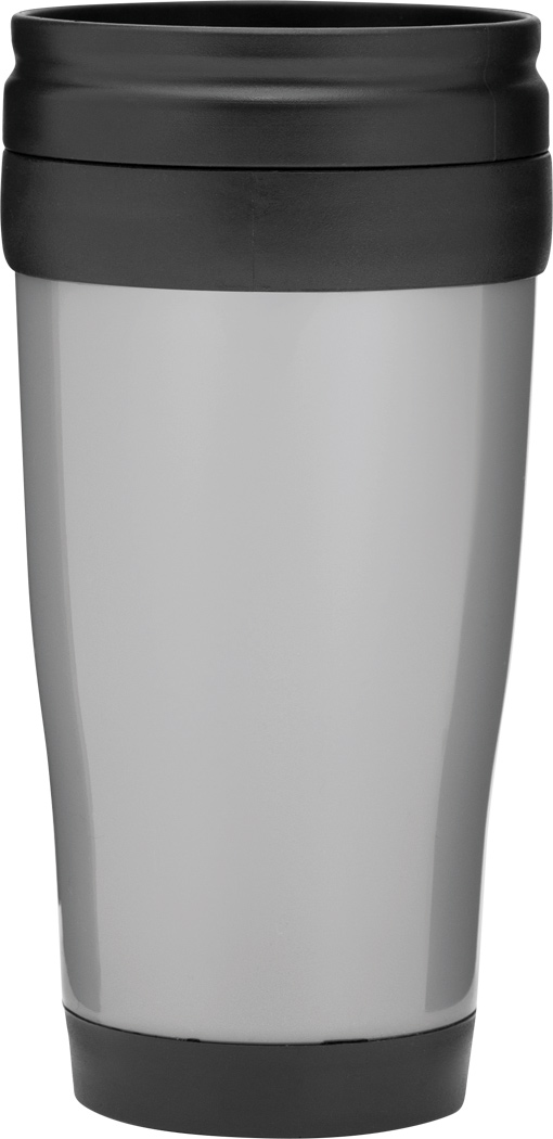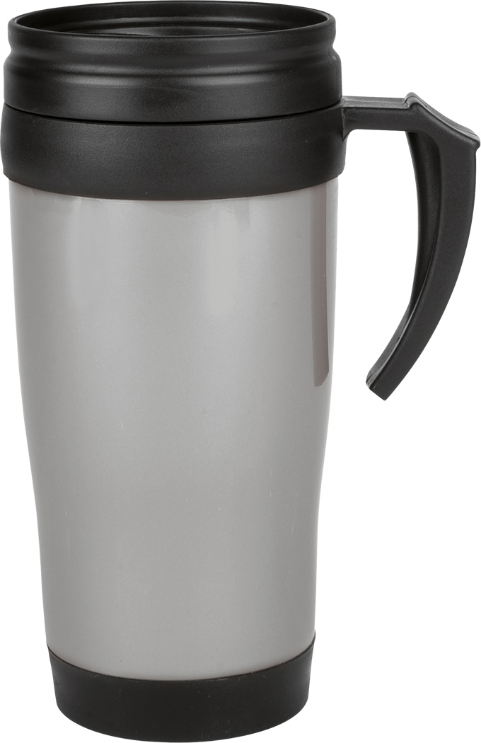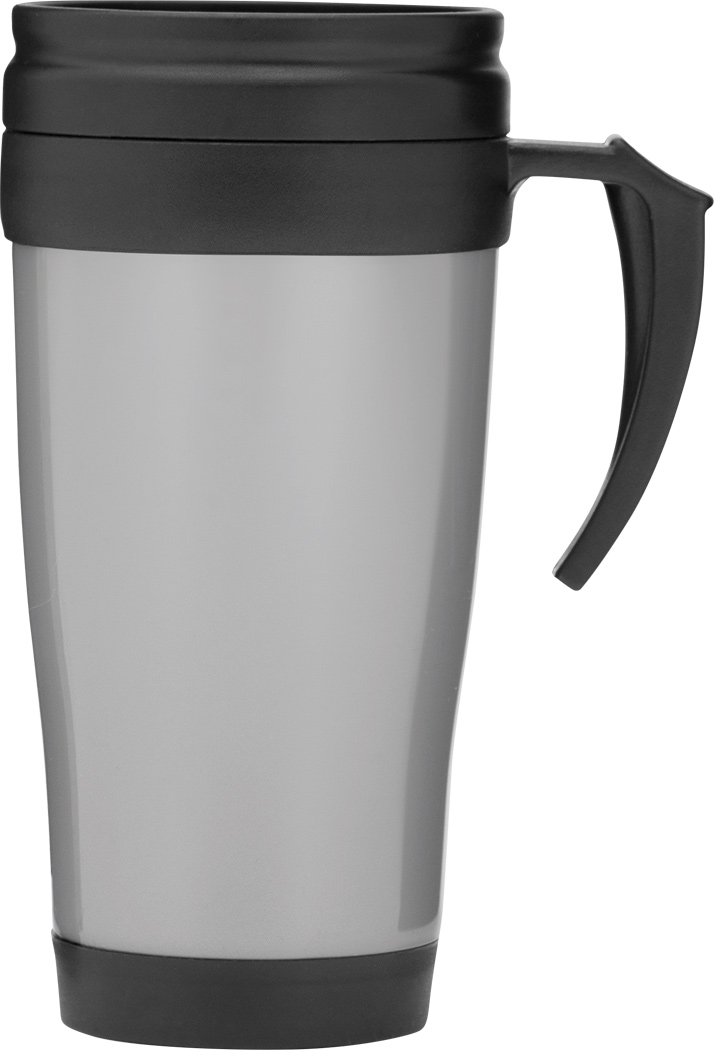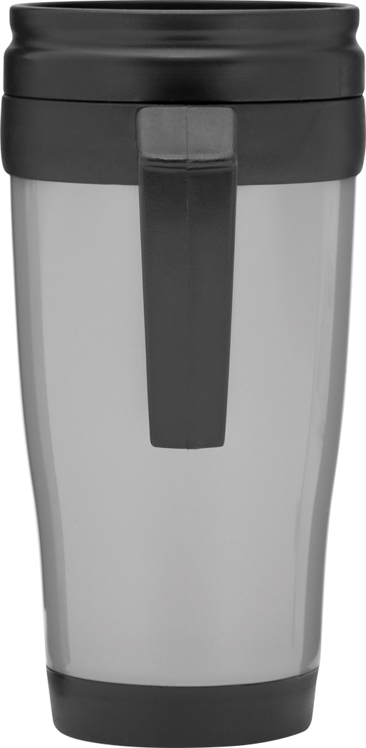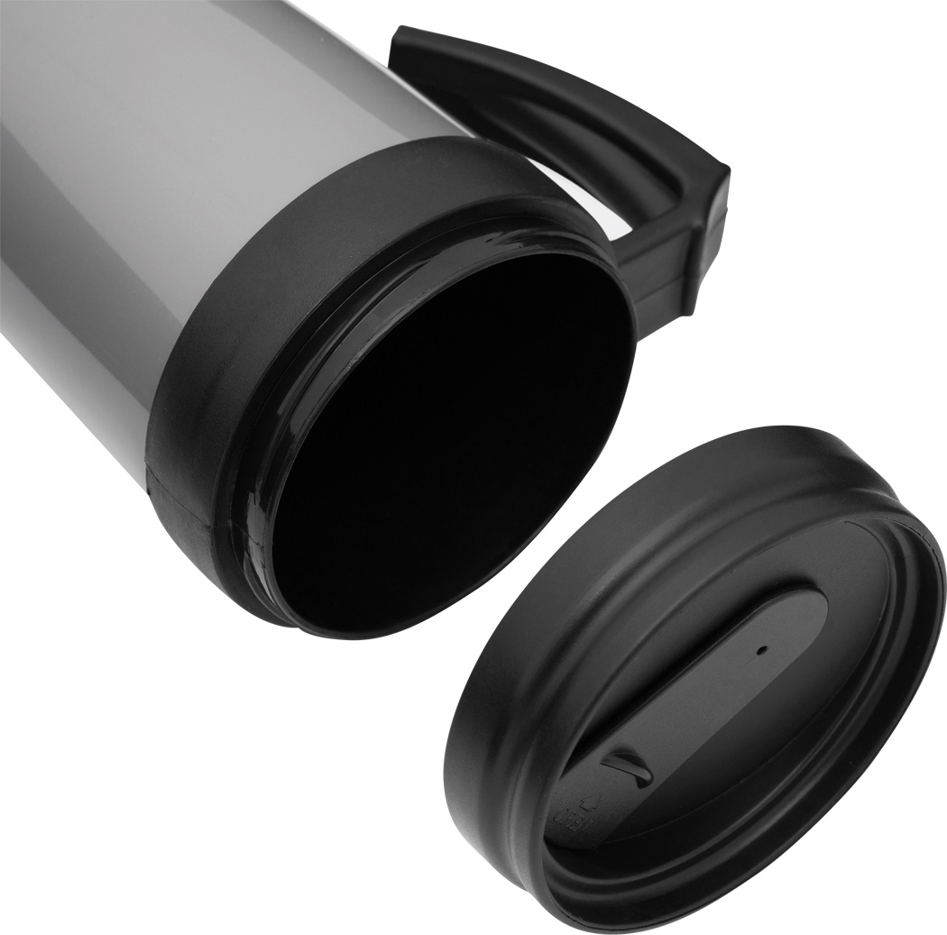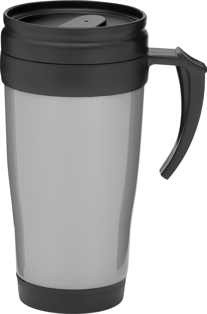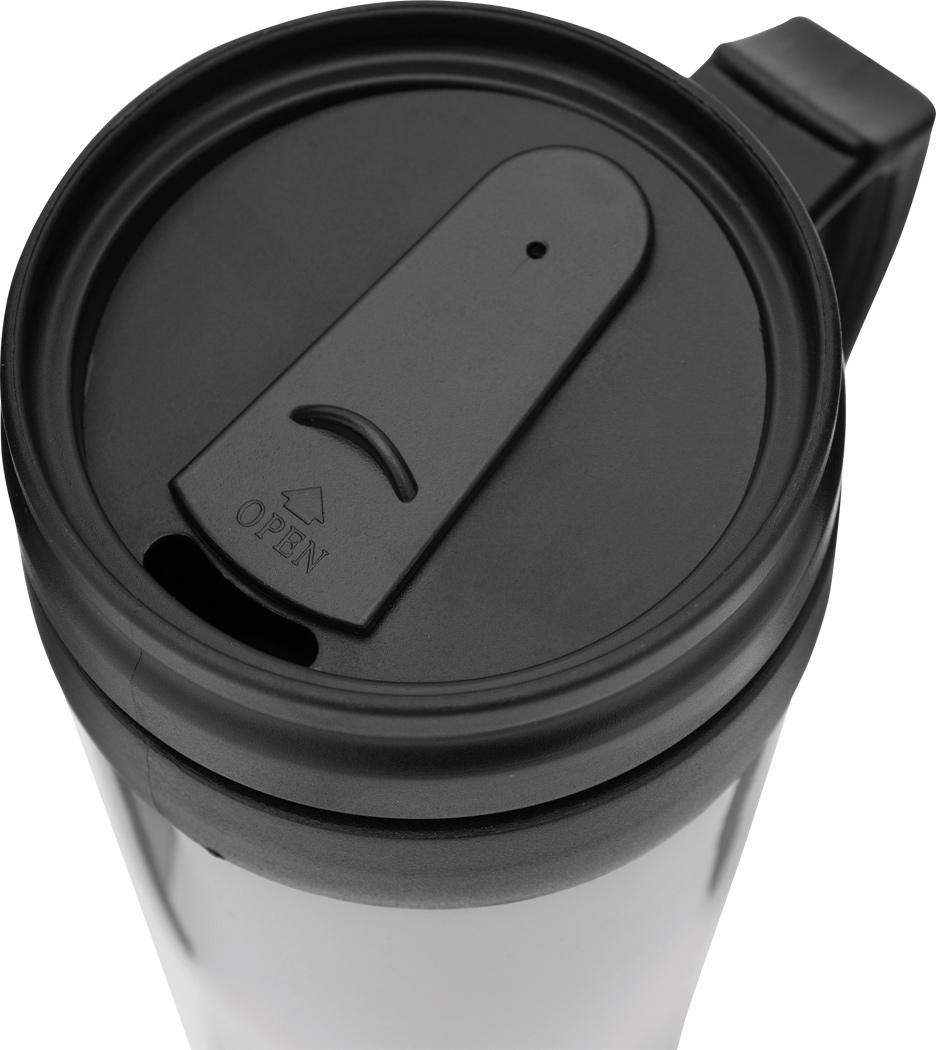Trinkbecher WARM-UP, doppelwandig: innen und außen aus Kunststoff, mit praktischem Kunststoffgriff und Trinköffnung im Deckel, Füllmenge ca. 400 ml