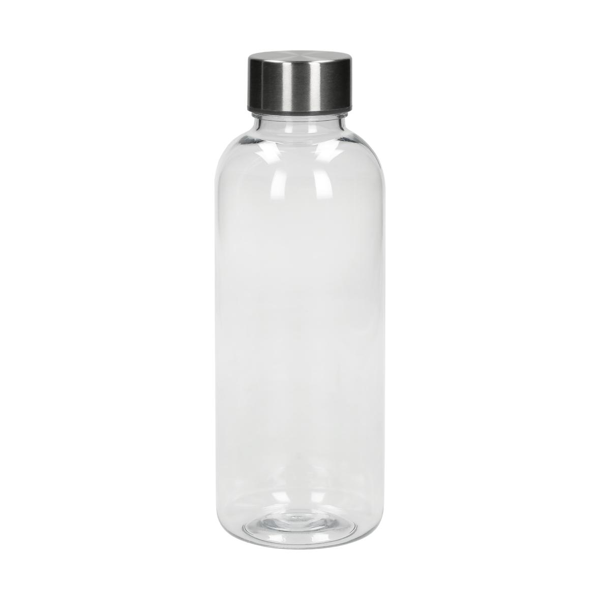 Glasklare Flasche aus SAN Kunststoff mit Schraubverschluss aus Edelstahl mit Gummieinlage für eine hohe Dichtigkeit. Füllmenge: 0,6 Liter.