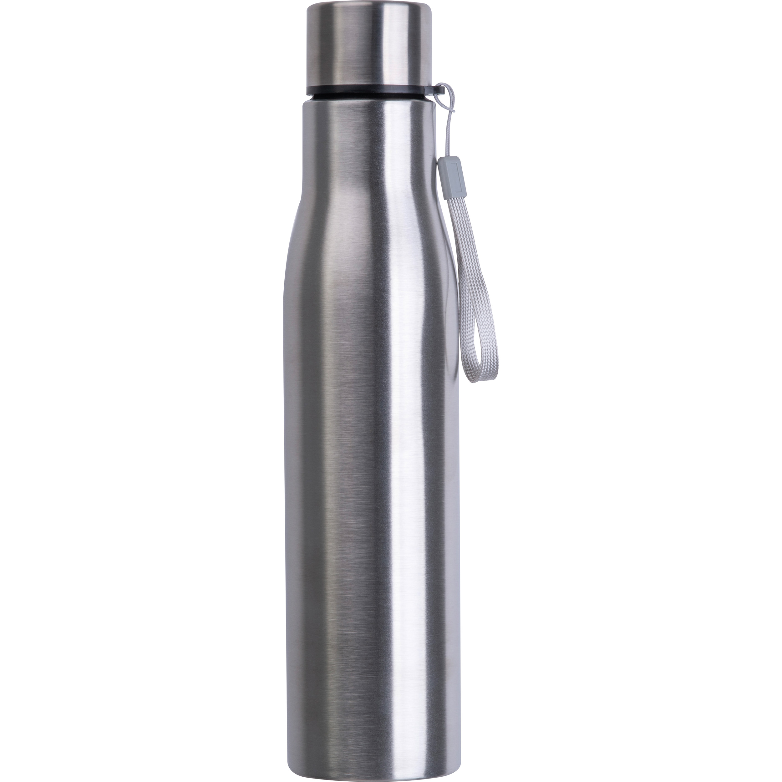 Trinkflasche aus recyceltem 304er Edelstahl mit Trageschlaufe am Deckel und einem Füllvermögen von 900 ml. Ihre Werbung bringen wir mittels einer Lasergravur auf der Flasche an.