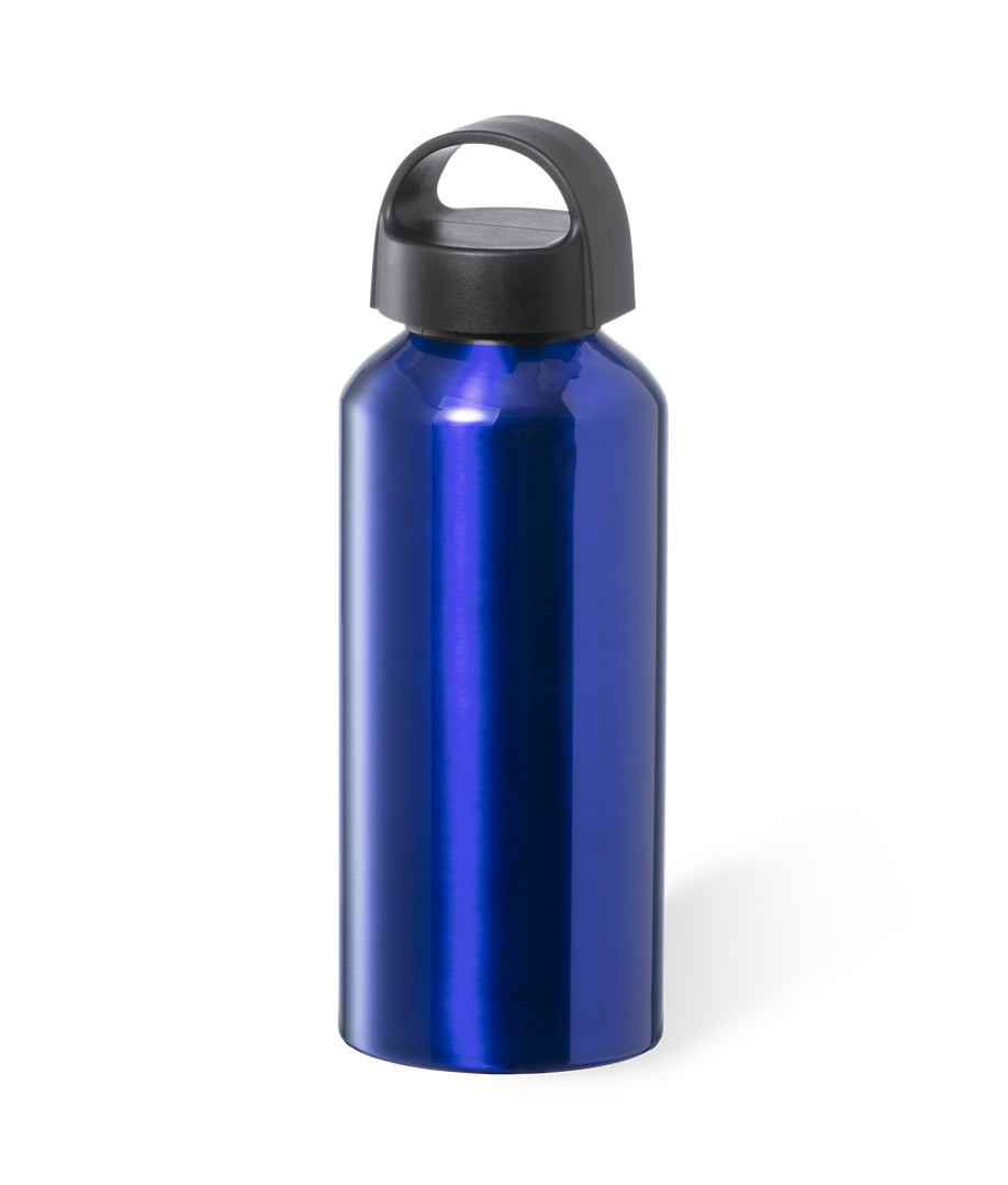 Flasche mit 500 ml Fassungsvermögen, aus Aluminium mit glänzender Oberfläche. Schwarzer Schraubverschluss mit integriertem Griff, BPA-frei. Erhältlich in einer breiten Farbpalette und in einer individuellen Kraft-Design-Box. Gebrauchsanweisung in Englisch und Spanisch erhältlich.
