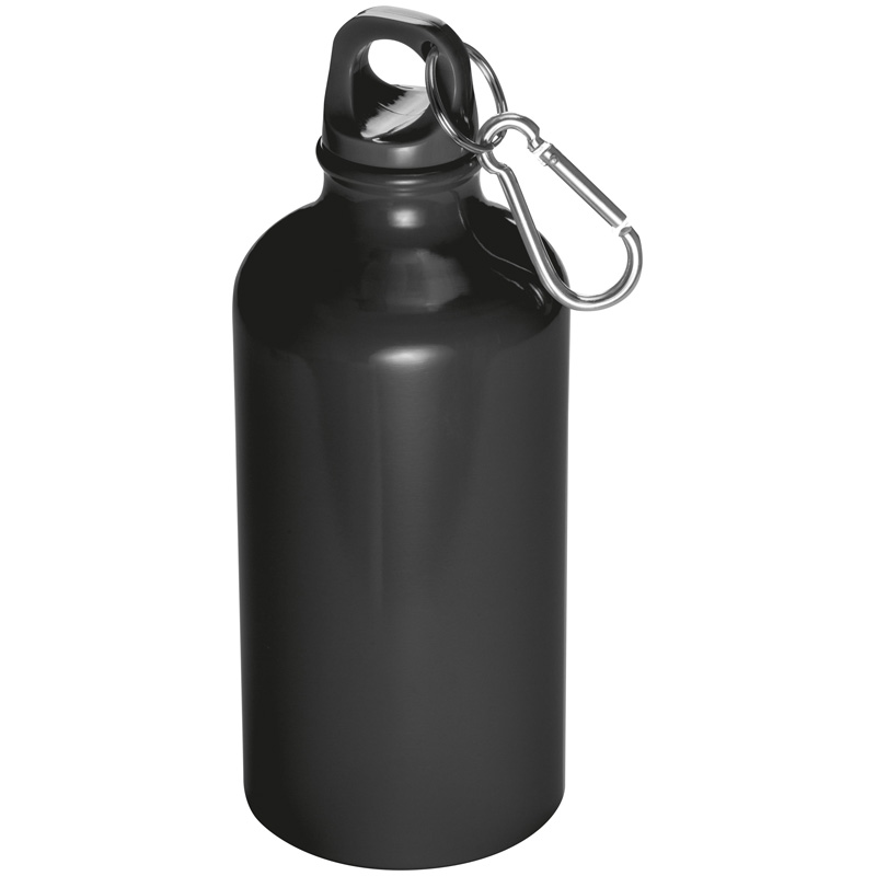Auslaufsichere Trinkflasche aus Aluminium mit Karabinerhaken und einem Fassungsvolumen von 500 ml. Ihre Werbung wird auf die Flasche gelasert.