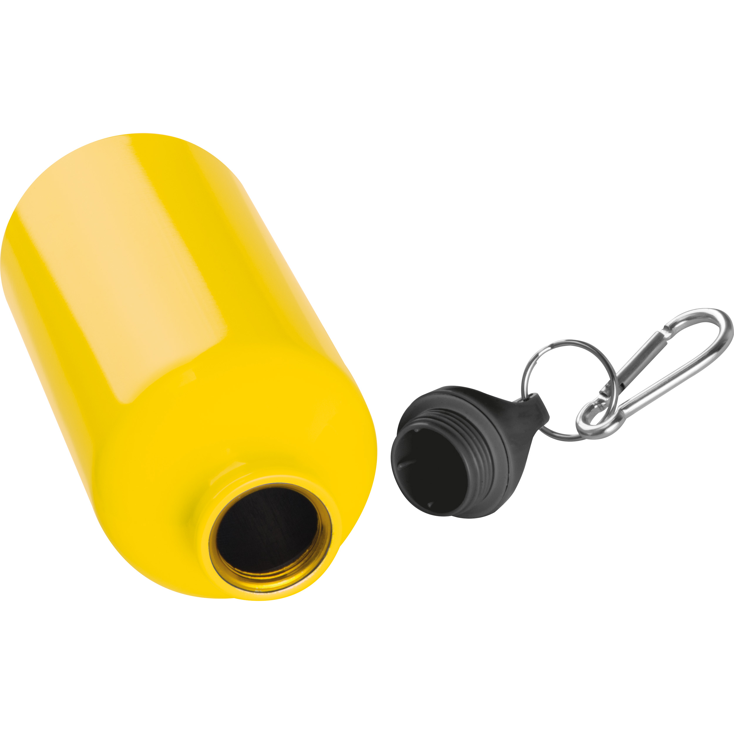 Auslaufsichere Trinkflasche aus Aluminium mit Karabinerhaken und einem Fassungsvolumen von 500 ml. Ihre Werbung wird auf die Flasche gelasert.
