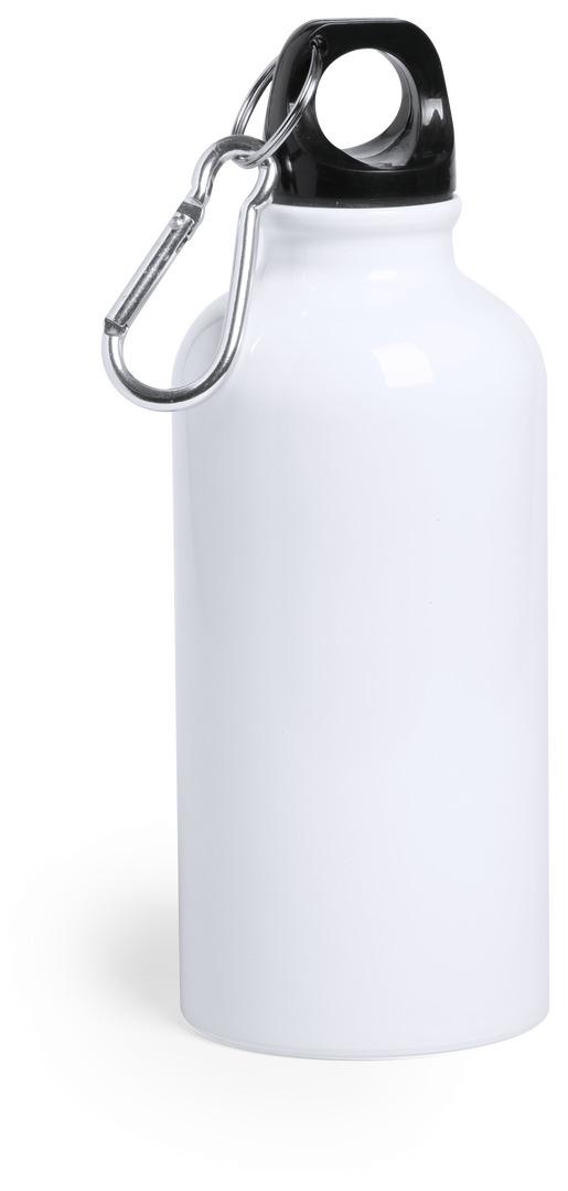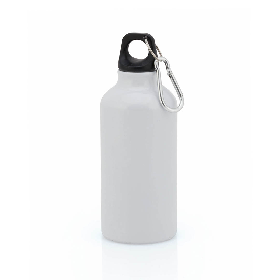 Trinkflasche mit 400 ml Fassungsvermögen und Aluminiumgehäuse in verschiedenen leuchtenden Farben. Mit aufschraubbarem Sicherheitsverschluss und Metallkarabiner für den Transport. Präsentiert in einer attraktiven Designbox.