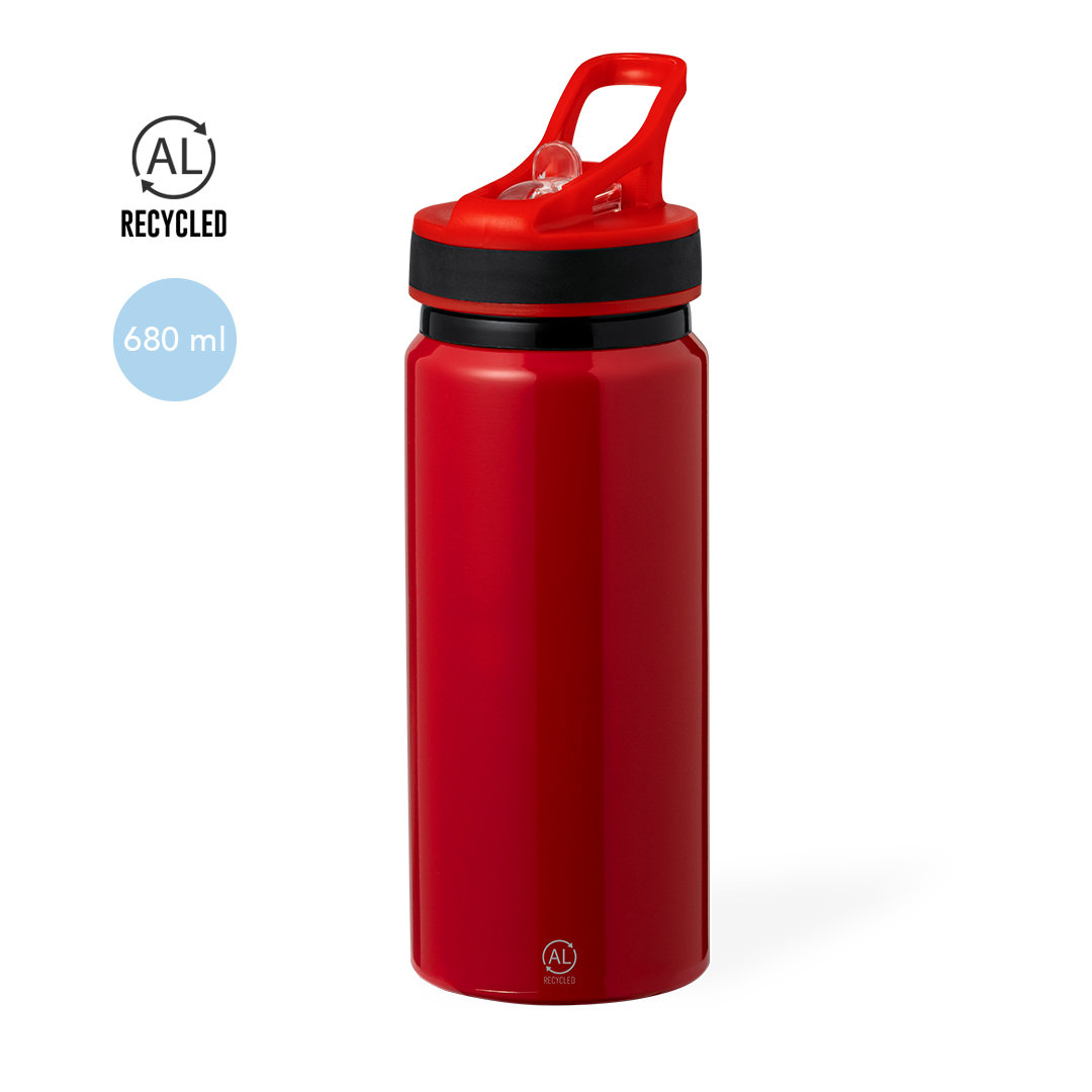 Trinkflasche aus recyceltem Aluminium mit 680 ml Fassungsvermögen. BPA-frei, mit leicht zu öffnendem System, Strohspender und passendem Tragegriff. Mit Recycling-Aluminium-Logo und in einer Reihe von hellen Farben erhältlich. Präsentiert in einer attraktiven Kraft-Design-Box. Recyceltes Aluminium ist ein Material mit nahezu unbegrenzten Recyclingmöglichkeiten, ohne dabei seine ursprünglichen Eigenschaften zu verlieren und weniger Energie zu verbrauchen. GRS (Global Recycled Standard) Zertifizierung, die die recycelte Herkunft des Materials garantiert, das zur Herstellung des Produkts verwendet wird.