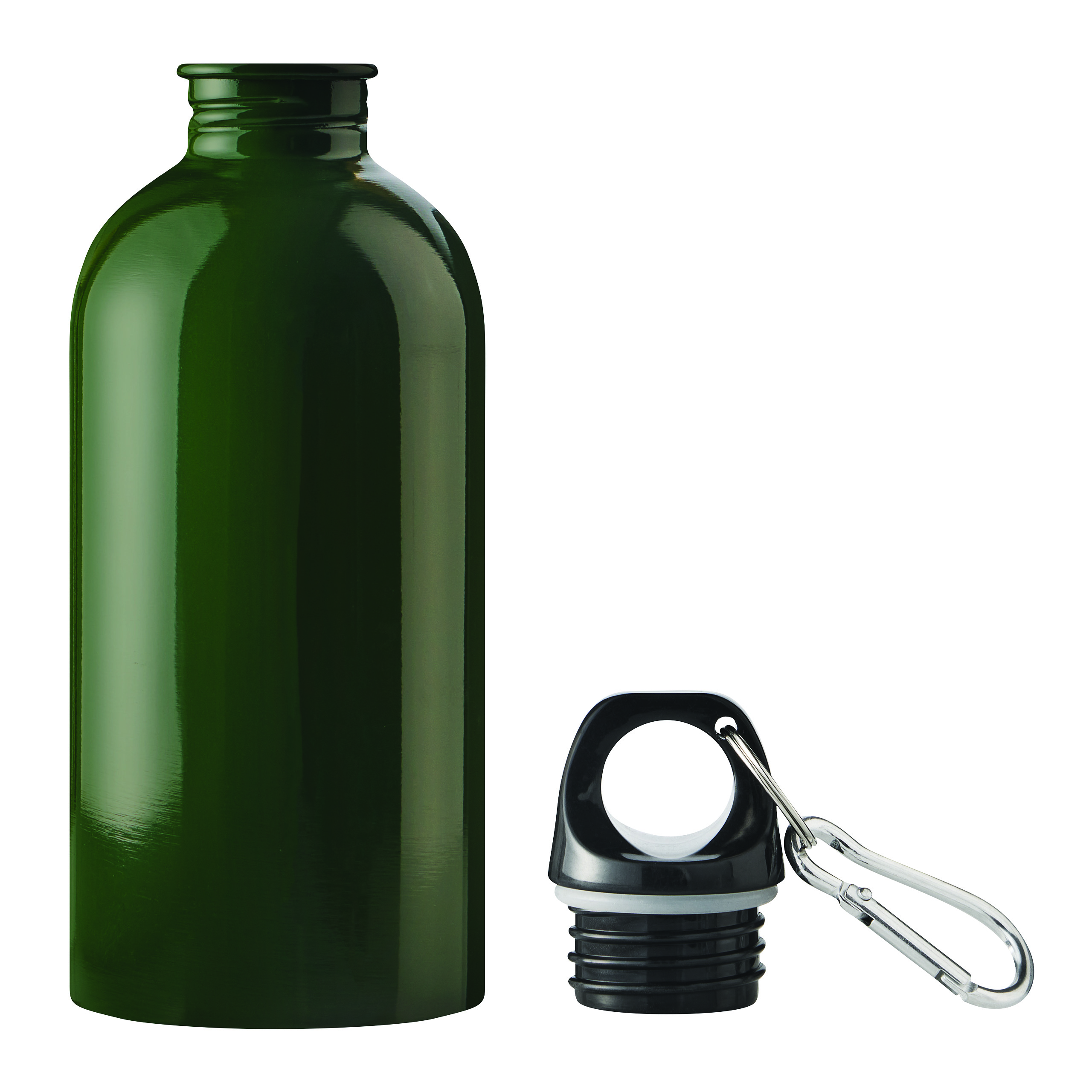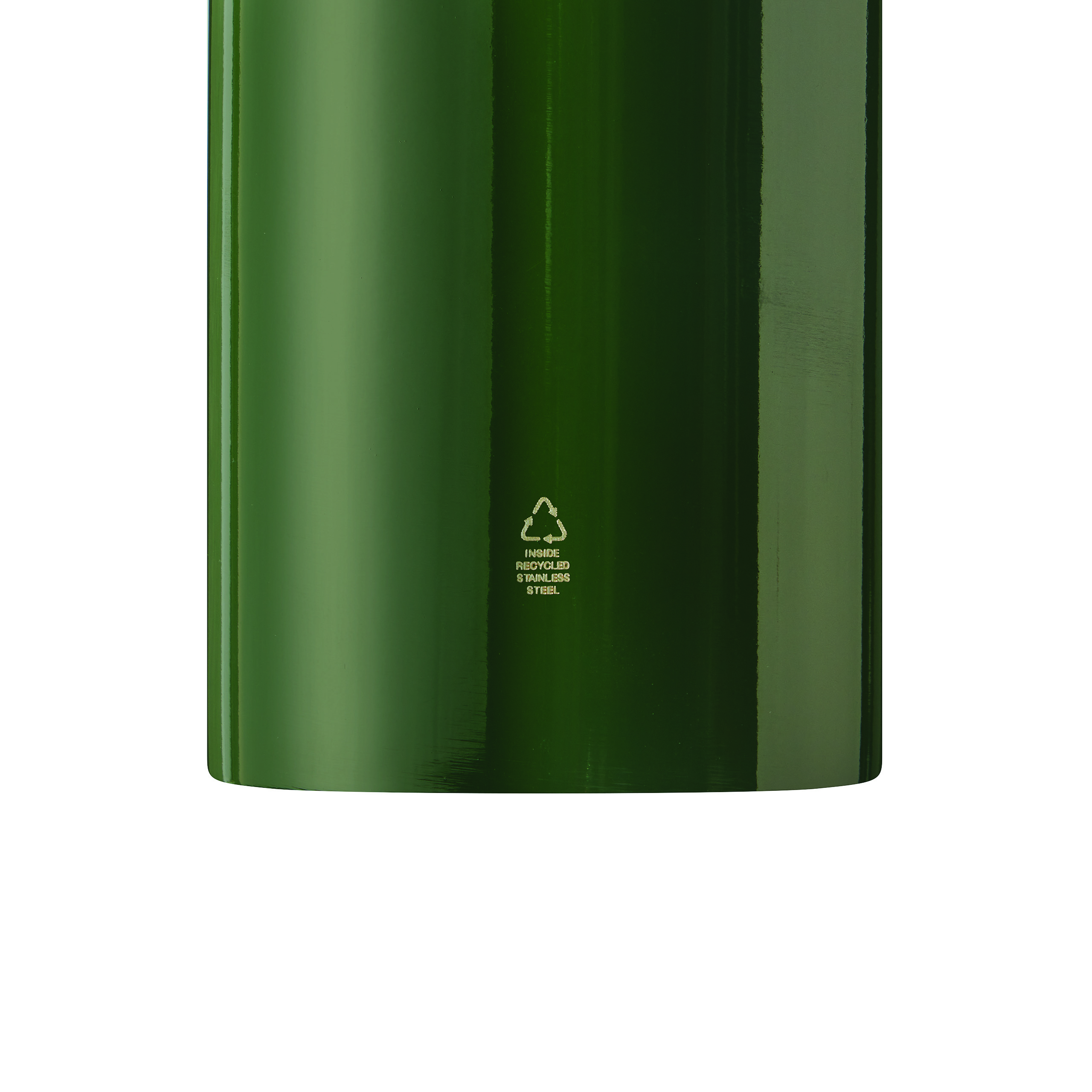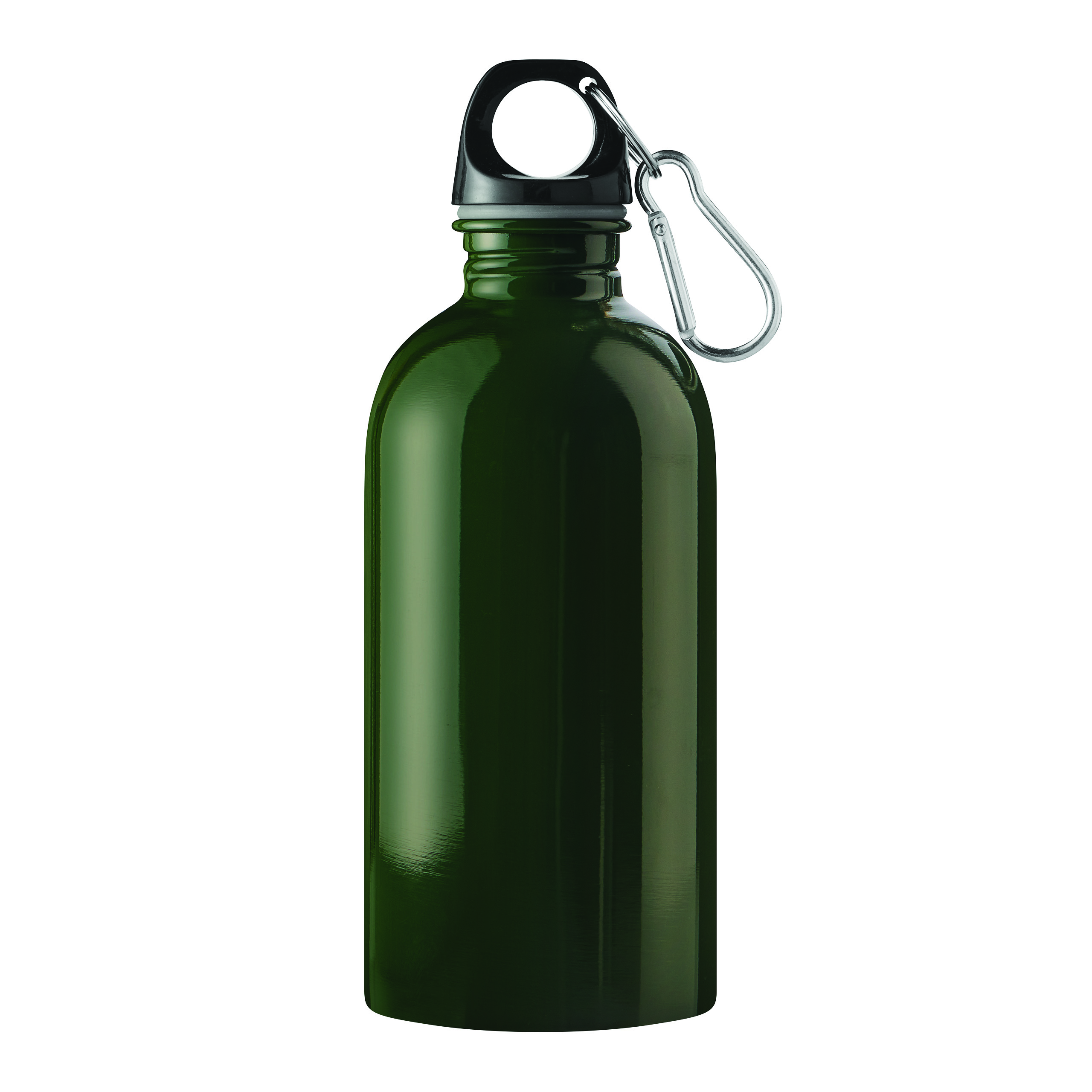Trinkflasche SMALLTRANSIT, einwandig: aus recyceltem Edelstahl, schwarzer Kunststoff-Deckel mit sicherem Schraubverschluss, Silikon-Dichtring, Tragegriff, Schlüsselring und Karabinerhaken (der Karabiner ist NICHT als Sicherung beim Klettern geeignet), Füllmenge ca. 550 ml