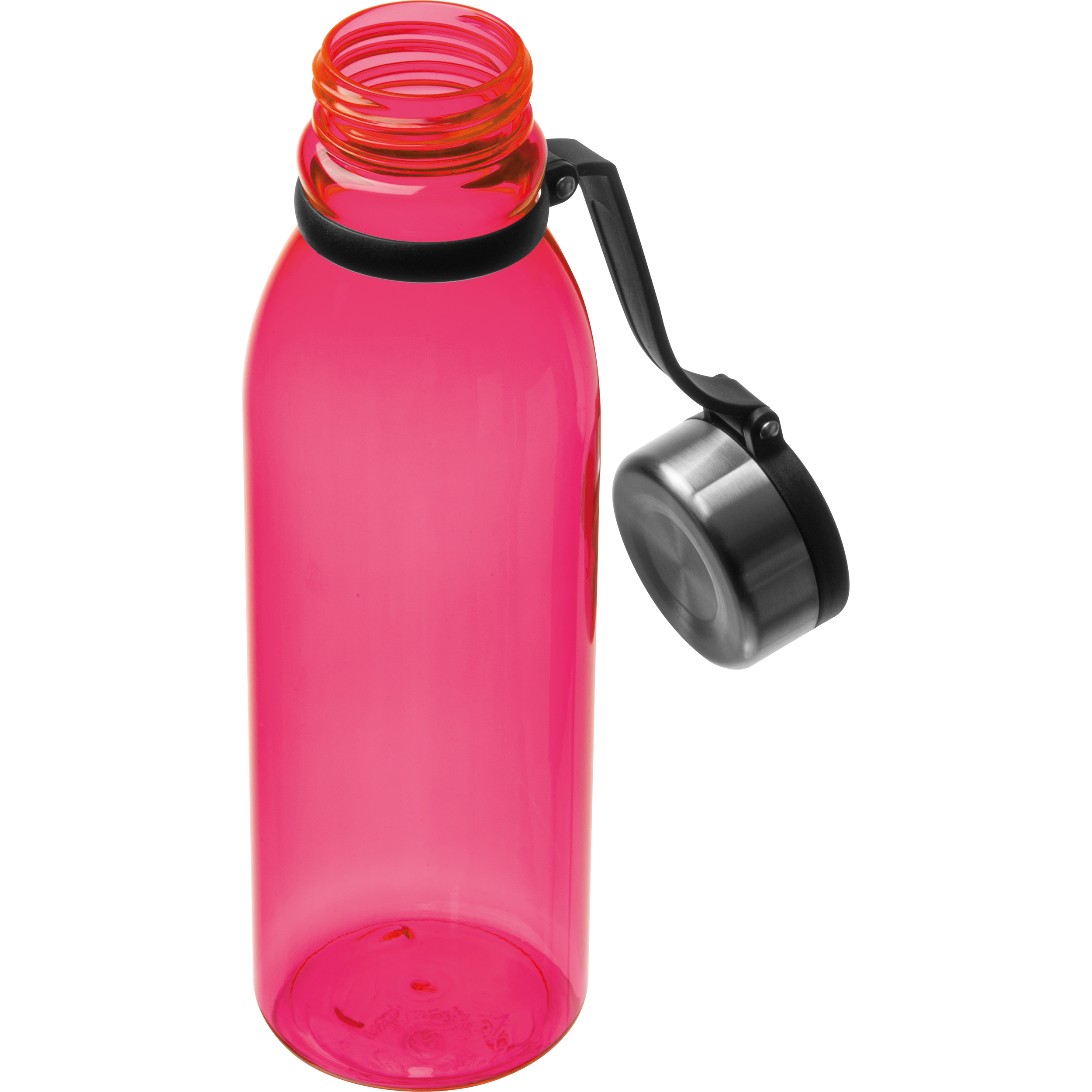 Auslaufsichere Trinkflasche aus PET mit einem Fassungsvolumen von 780 ml. Ihre Werbung drucken wir auf die Flasche. Gravur auf dem Edelstahldeckel auf Anfrage möglich.