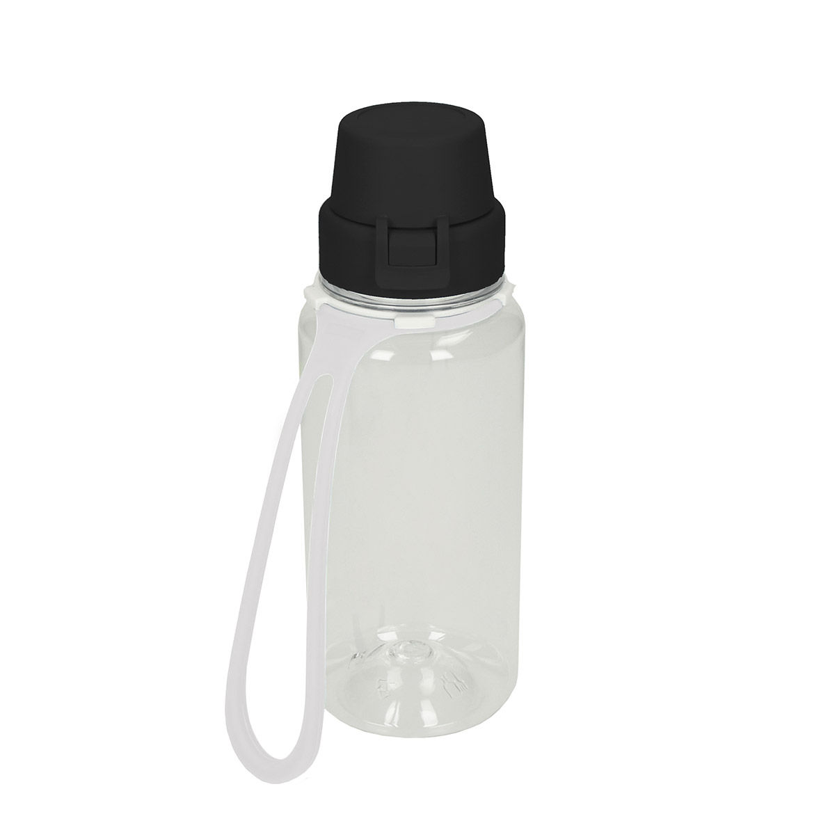 Die perfekte Flasche für Kindergarten, Schule und Freizeit. Praktische und geschmacksneutrale Trinkflasche aus robustem TritanTM mit Strap aus Silikon. Dieser ermöglicht zum Beispiel einen einfachen Transport der Flasche am Handgelenk. Durch die große Öffnung lässt sich die Flasche leicht befüllen. Der kindgerechte Verschluss ist leicht zu öffnen. Füllvolumen: 0,4 Liter.