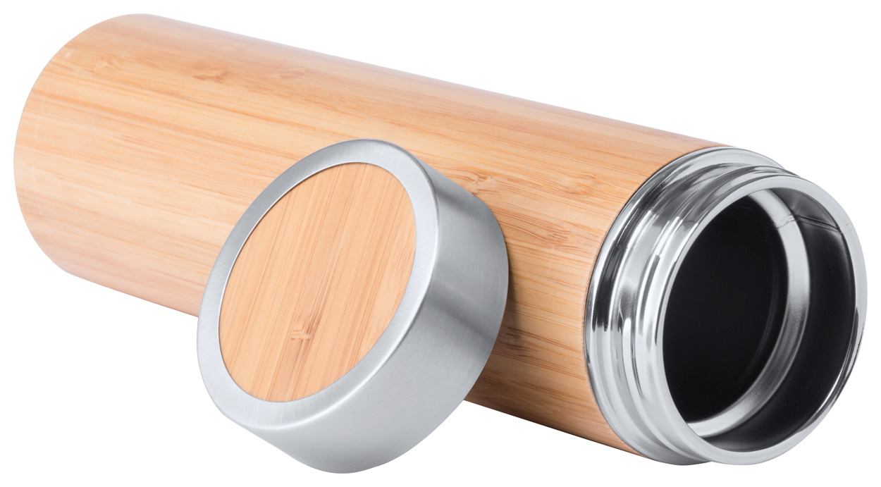 Doppelwandige Thermoflasche aus Edelstahl und Bambus. Füllmenge: 500 ml.