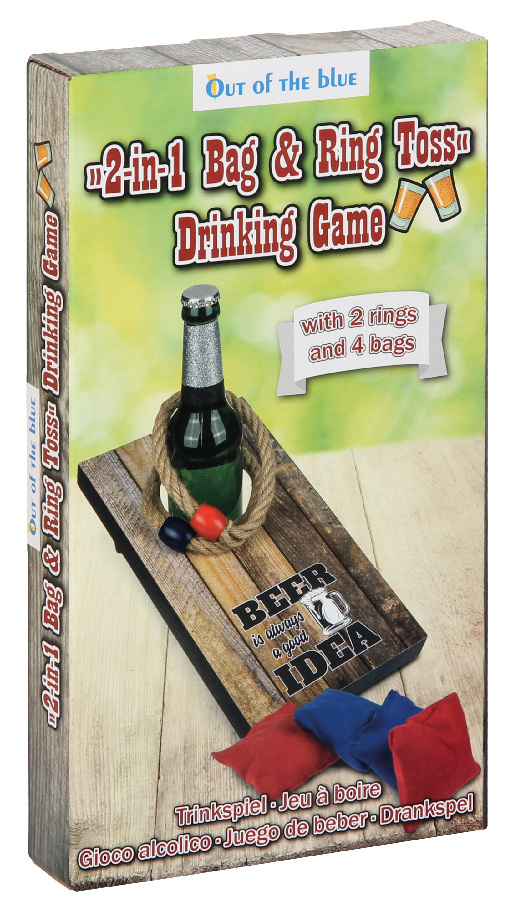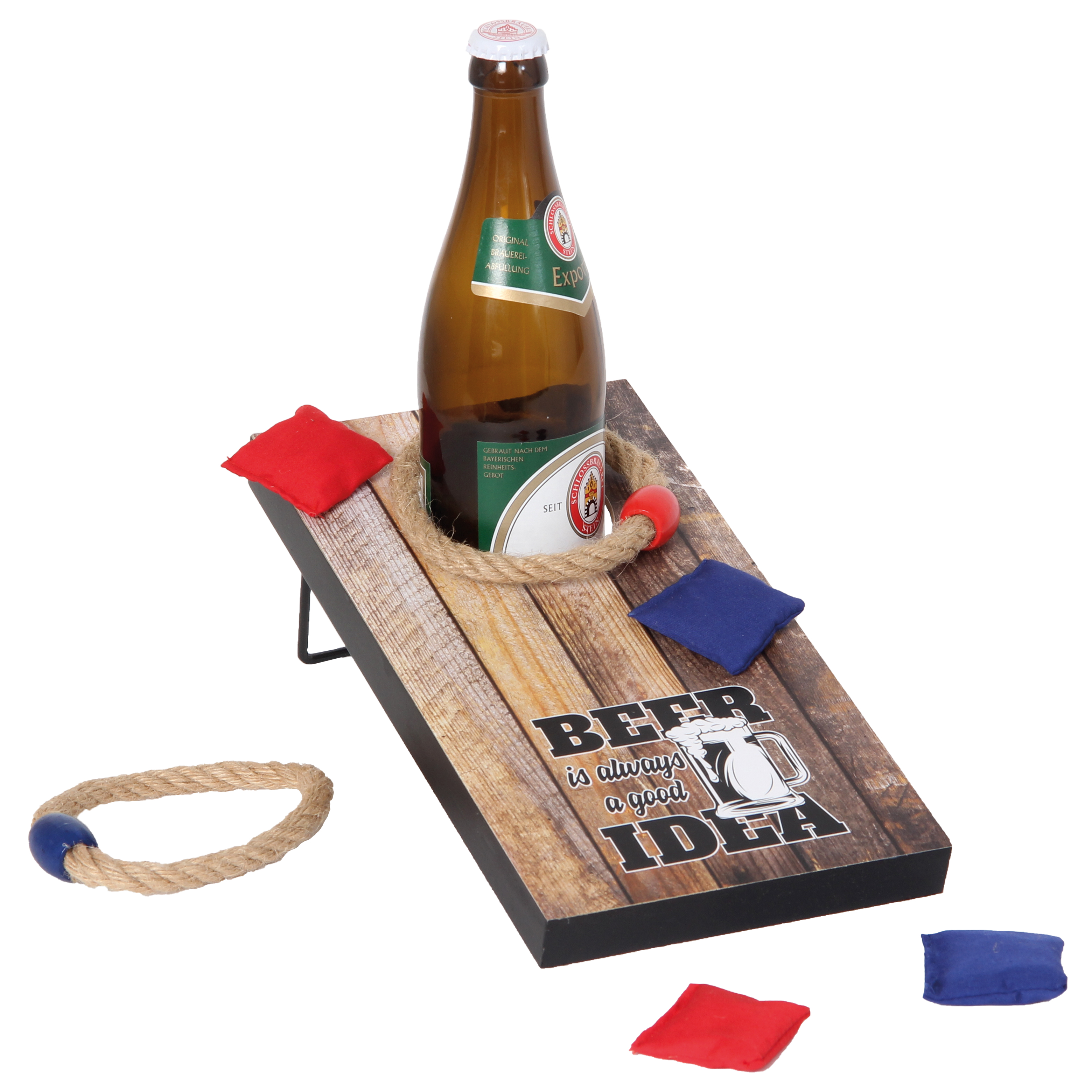 Lustige Variante der altbewährten Klassiker. Mit 2 Wurfringen je D 11cm und 4 Säckchen je ca 4 x 4 cm. In Geschenkbox.