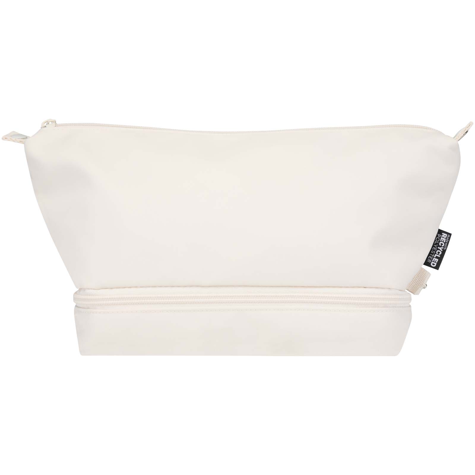 Die recycelte Trip Aware™ Reisekulturtasche ist eine kompakte, formstabile Lösung zur strukturierten Aufbewahrung von Pflegeartikeln auf Reisen. Hergestellt aus 290D-Twill-Polyester mit gestrickter Rückseite und RPET 210D / PU Kunstoff-Futter, verfügt sie über ein übersichtliches Layout mit praktischen Fächern. Das Hauptfach verfügt über eine Innentasche mit Reißverschluss für kleinere Gegenstände. Das untere Fach im Clamshell-Design bietet Platz für wichtige Utensilien, die sich so leichter organisieren lassen und schneller griffbereit sind. Jeder Artikel wird außerdem mit einem Aware™ Tracer geliefert. Diese innovative Funktion ermöglicht es den Nutzern, die Herkunft und den Weg ihres Artikels mithilfe eines QR-Codes nachzuvollziehen, wodurch die Transparenz der Lieferkette erhöht und eine stärkere Verbindung zwischen dem Produkt und seinem Herstellungsprozess fördert. Fassungsvermögen: 6 Liter.