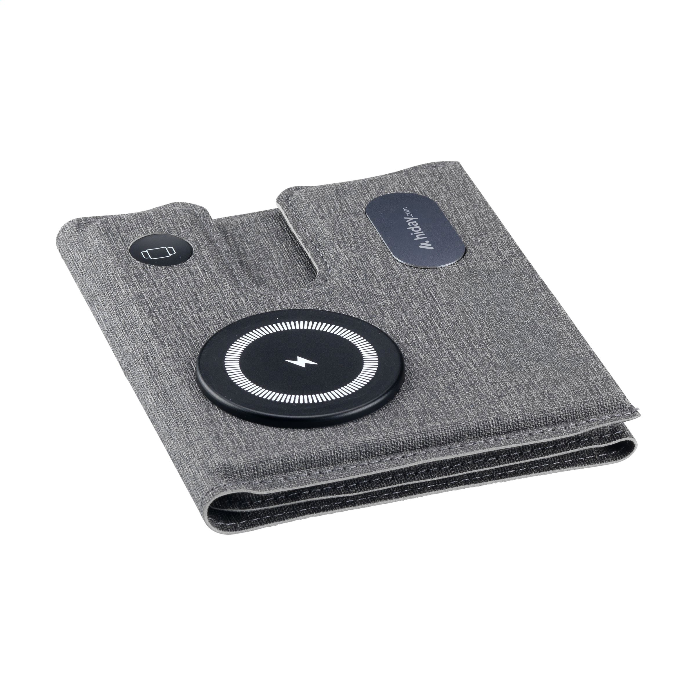 Magnetisches, kabelloses 3-in-1-Ladegerät (15 W) aus recyceltem ABS und recyceltem PU mit grauem Mischmuster. Diese Ladestation unterstützt schnelles kabelloses Laden: 15 W für ein Mobiltelefon, 2,5 W für Ihre iWatch und 3 W für TWS-Kopfhörer. Eingang: 1 x USB-C 9V/3A. Das eingebaute, magnetische Schnellladegerät ist mit allen Geräten kompatibel, die kabelloses Laden nach Qi unterstützen. Stellen Sie diese Dockingstation auf Ihren Schreibtisch und Ihr Arbeitsplatz bleibt aufgeräumt und Ihre Geräte geladen. Zusammenklappbar und leicht zu transportieren. Inklusive USB-C / USB-C-Ladekabel und Gebrauchsanweisung. RCS-zertifiziert. Gesamtes recyceltes Material: 49%. Pro Stück in einer Verpackung.